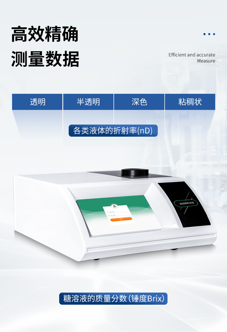 全自動折光儀配備高性能線陣CCD感光部件,通過高速、高精度的信號采集和分析處理技術,配有半導體帕爾貼超級溫度控制系統。能高效、高精確測量透明、半透明、深色、粘稠狀等各類液體的折射率(nD)和糖溶液的質量分數(Brix)。