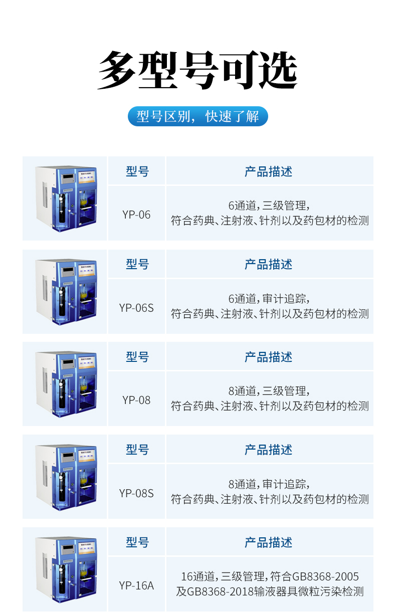 ●滿足《中國藥典》可直接檢測注射液、無菌粉、輸液器具及藥包材的不溶性微粒含量及大小