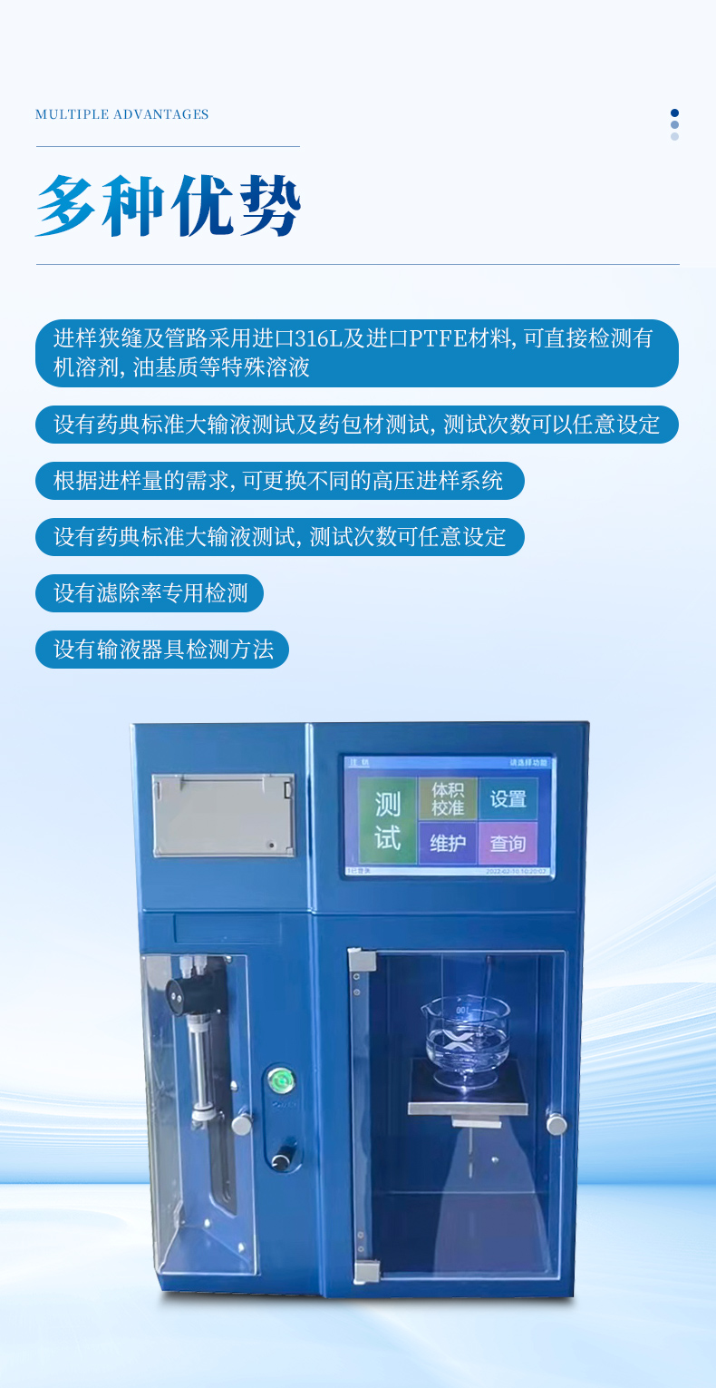 輸液器具測試(GB8368-2005)專用通道:25-50um、51-100um、>100um