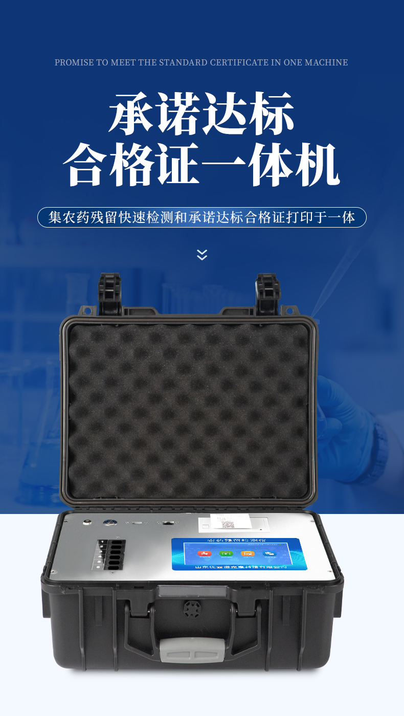 山東優云譜光電科技有限公司是一家專業生產食品快檢儀器的高新技術領域企業。我公司根據農村農業部辦公廳關于《加快推進承諾達標合格證制度試行工作的通知》,在原有的食用農產品合格證檢測打印一體機的基礎上優化了打印標簽,使打印標頭和打印內容符合承諾達標合格證的最新要求。該儀器集農藥殘留快速檢測和承諾達標合格證打印于一體,智能化程度高,在快速檢測的同時實現承諾達標合格證的打印。打印內容包含:承諾聲明、承諾依據、農產品名稱、數量(重量)、產地、生產者蓋章或簽名、聯系方式、開具日期等信息,合格證下方自動跟隨二維碼打印,掃描二維碼可實現自動追溯。實現農產品安全的全程數據溯源,適合各地檢測機構、農業合作社、蔬菜批發市場等單位使用。