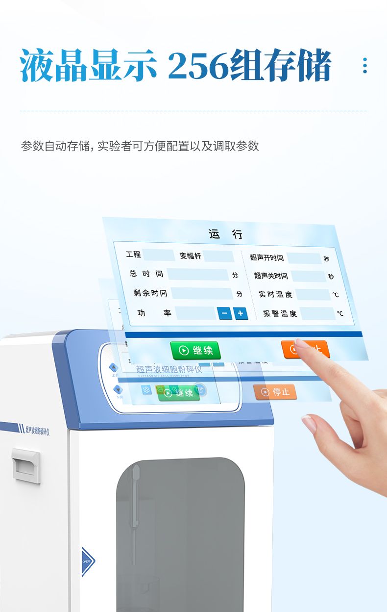 萊恩德自研自產的超聲波細胞破碎儀,將隔音箱融入到主機中形成一體化。功能齊全、外觀新穎、性能可靠。儀器采用大屏液晶顯示;中央微機集中控制,超聲輸出、間隙時間、超聲功率,樣品溫度監測顯示,頻率自動跟蹤,故障自動報警等功能。適用于生物化學、微生物學、藥物化學、表面化學、物理學、動物學、農學、醫學、制藥等領域的教學、科研及生產。