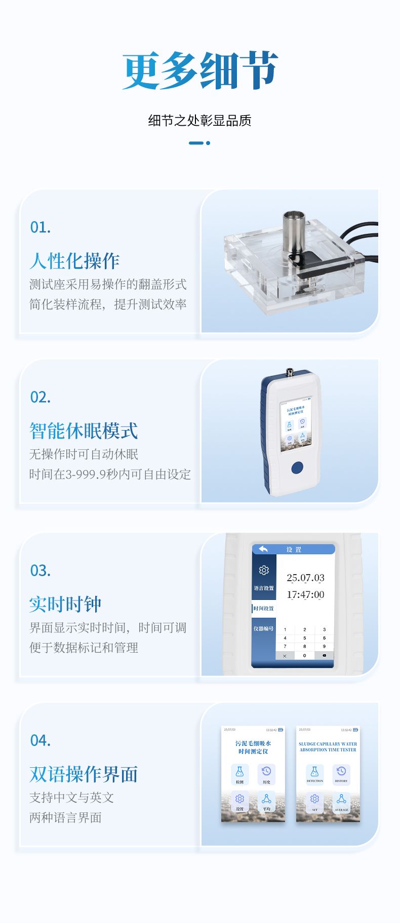 高精度測量:測量精度高達(dá)0.1秒,能夠精準(zhǔn)捕捉污泥脫水特性的細(xì)微變化。