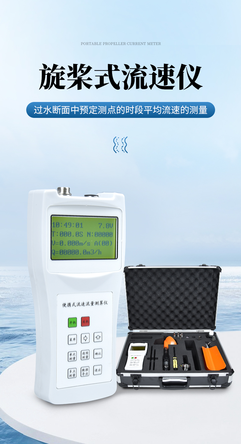 流速流量測算儀(簡稱便攜式流速儀)是一種在水文測驗中進行流速測量的通用型儀器,用于江河、湖泊、水庫、水渠等過水斷面中預定測點的時段平均流速的測量。