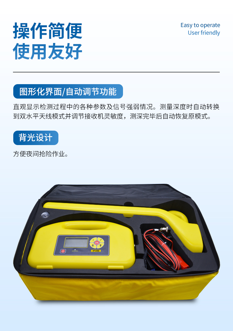 地下管線探測儀能在非開挖的情況下,對地下管道、電纜、光纜進(jìn)行精確定位和埋土深度測量,精確查找地下管道外防腐層破損點、埋地電纜故障點的位置。該儀器融合超窄帶濾波器、藍(lán)牙無線通訊、GPS定位、專業(yè)數(shù)據(jù)分析軟件自動成圖、檢測報告自動生成等最先進(jìn)技術(shù),具有超強抗干擾能力,精準(zhǔn)定位和測深,適用于地下各種金屬管線的探測和巡線、管線管理與維護(hù)、市政規(guī)劃建設(shè)、供電等部門的管線檢測,是管道維護(hù)單位的必備儀器之一。