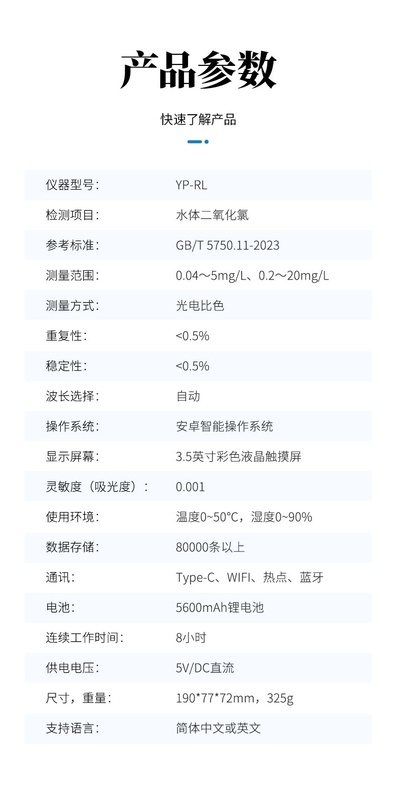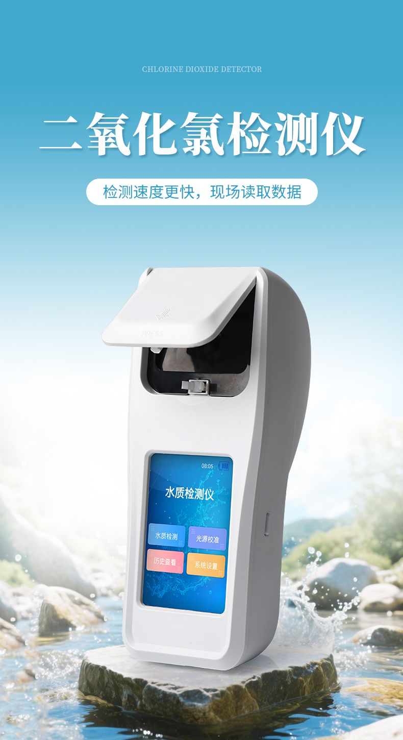 便攜式二氧化氯檢測儀配合快速顯色檢測試劑,可“快速、簡單、準確、穩定”進行測量,擁有精美的外觀造型,簡單的操作界面,準確的檢測系統,幫助用戶獲得精細的數據,可更準確、有效的分析水體狀況,提前預防,及時避免損失。