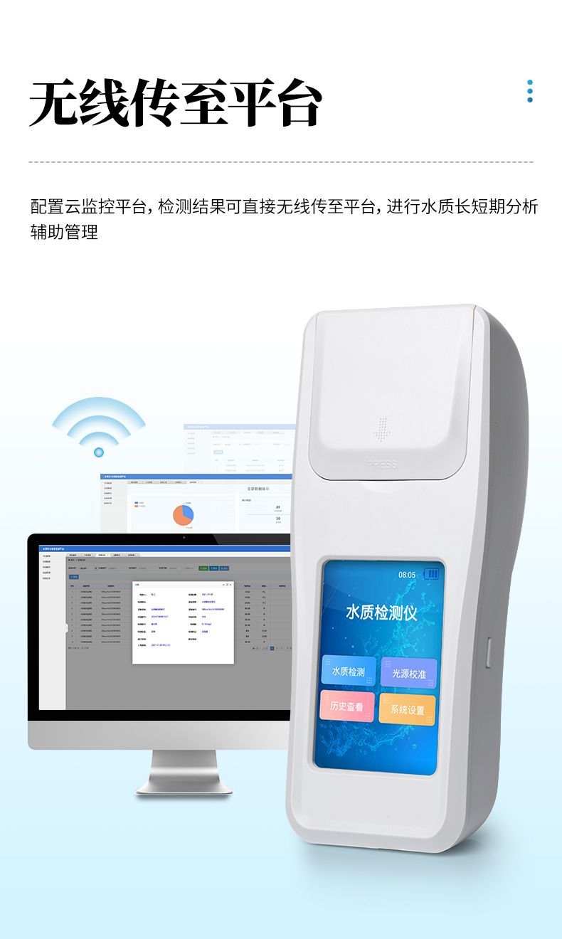 ②配置云監控平臺,檢測結果可直接無線傳至平臺,進行水質長短期分析,輔助管理。