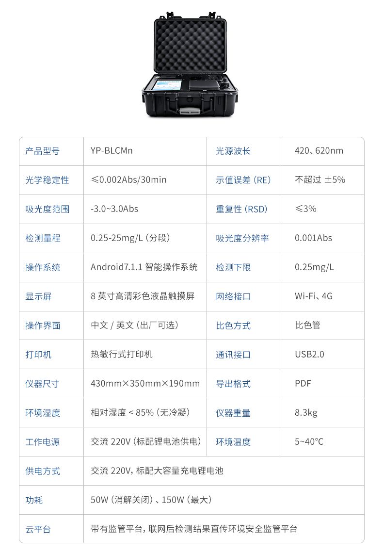 ⑥便攜式體積小,重量輕,方便戶外檢測;