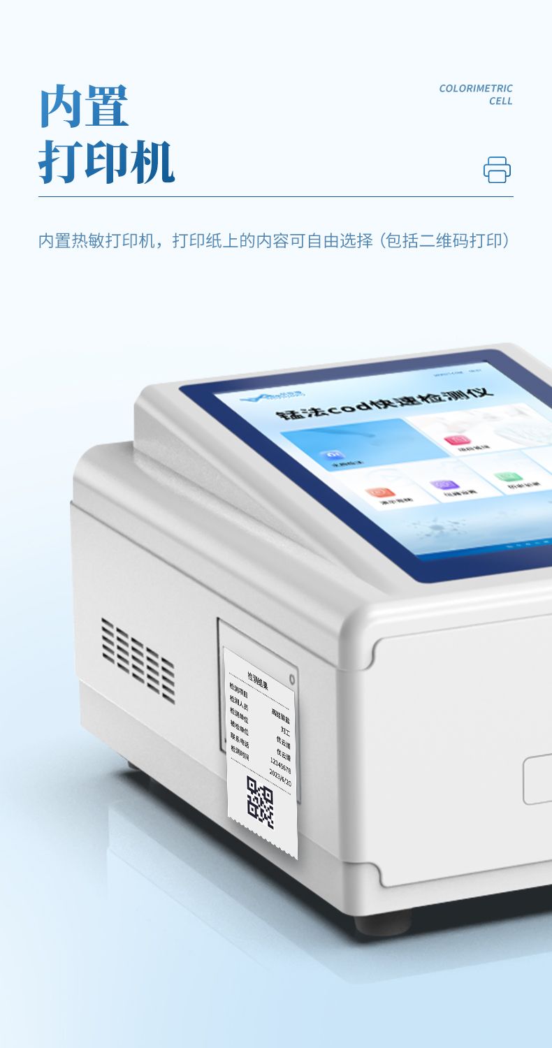本儀器采用錳法測定水中的COD指標,又稱CODMn或高錳酸鹽指數,兼具智能數據分析功能,圖表、列表顯示數據,分析一目了然;高清晰度彩色液晶觸摸顯示屏,Android智能操作系統,中文顯示界面,中英文鍵盤,人性化操作,使用更簡單。