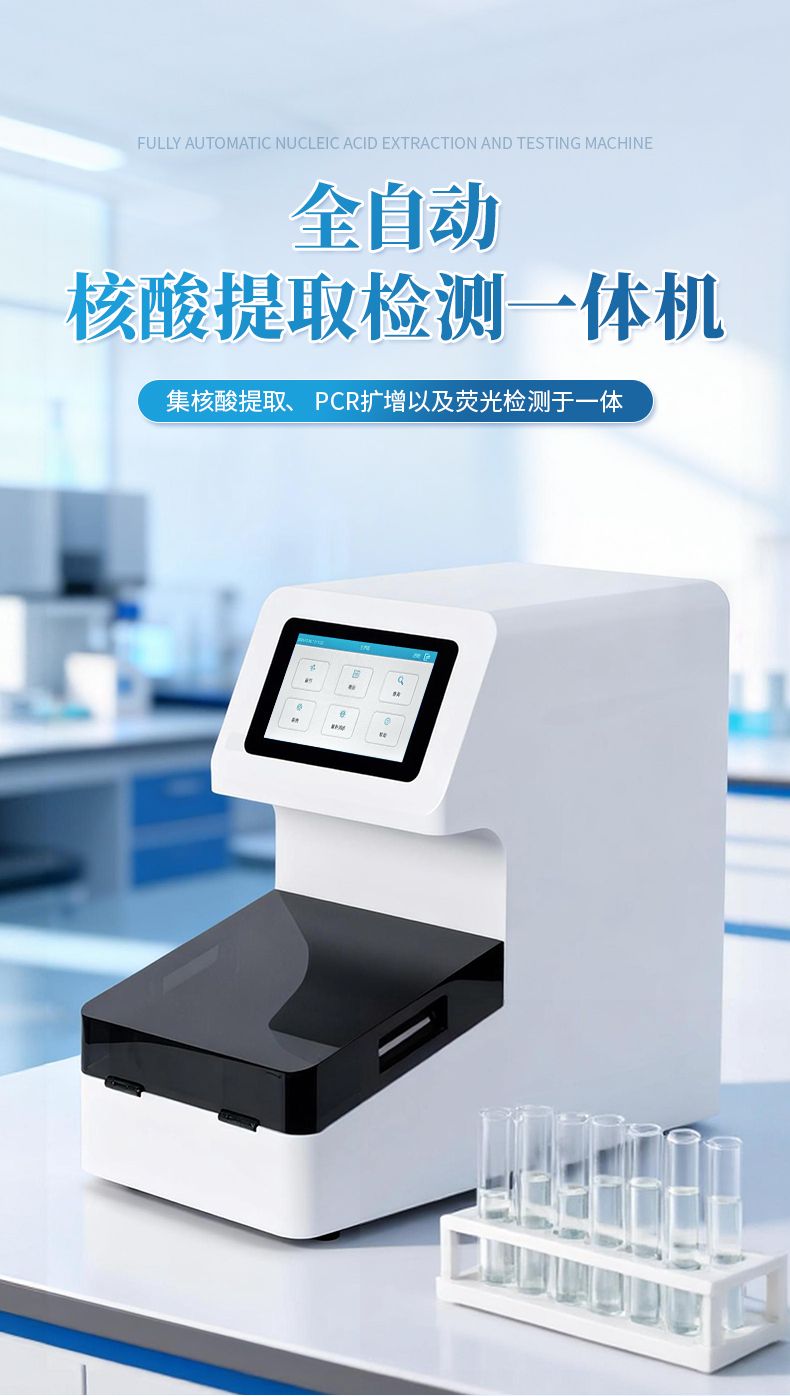 集核酸提取,熒光定量擴增,檢測為一體的全自動分子檢測一體機。