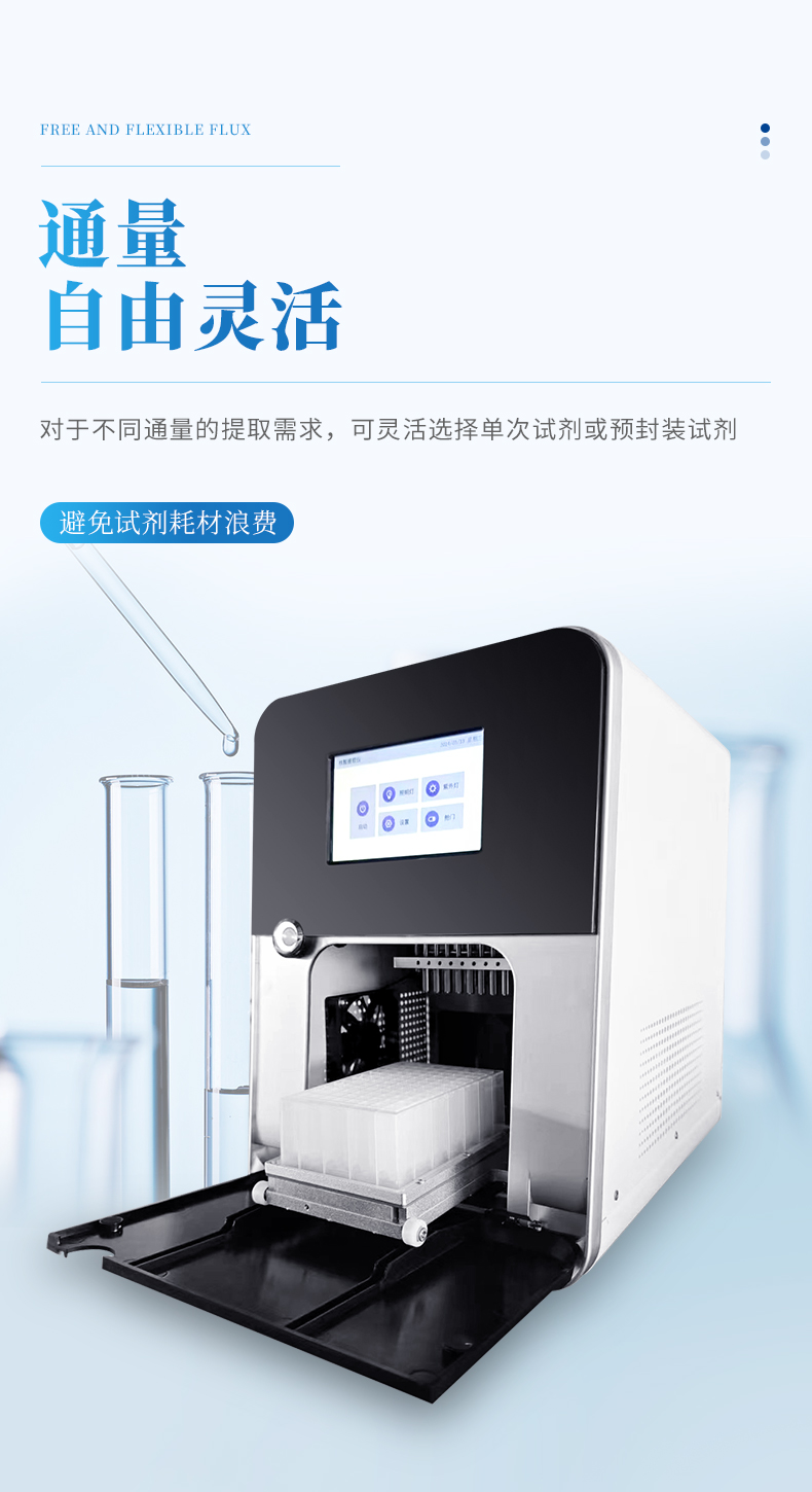 對于不同通量的提取需求,可靈活選擇單次試劑或預封裝試劑,避免試劑耗材浪費。