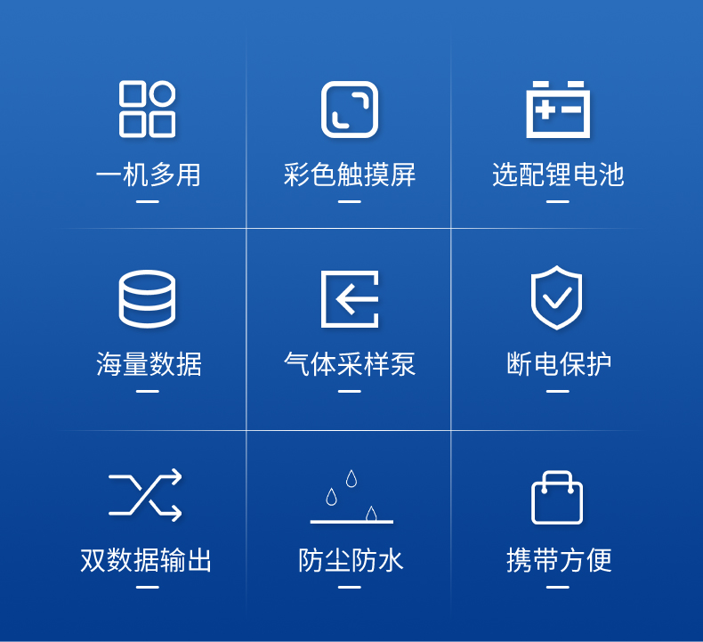 采樣器應用溶液吸收法采集環境大氣、室內空氣中的各種有害氣體;采用濾膜稱重法捕集環境大氣中的總懸浮微粒(TSP)和可吸入微粒(PM10)或(PM2.5)、氟化物、重金屬、SVOC等??晒┉h保、衛生、勞動、安監、軍事、科研、教育等部門用于氣態物質和氣溶膠的常規及應急監測。