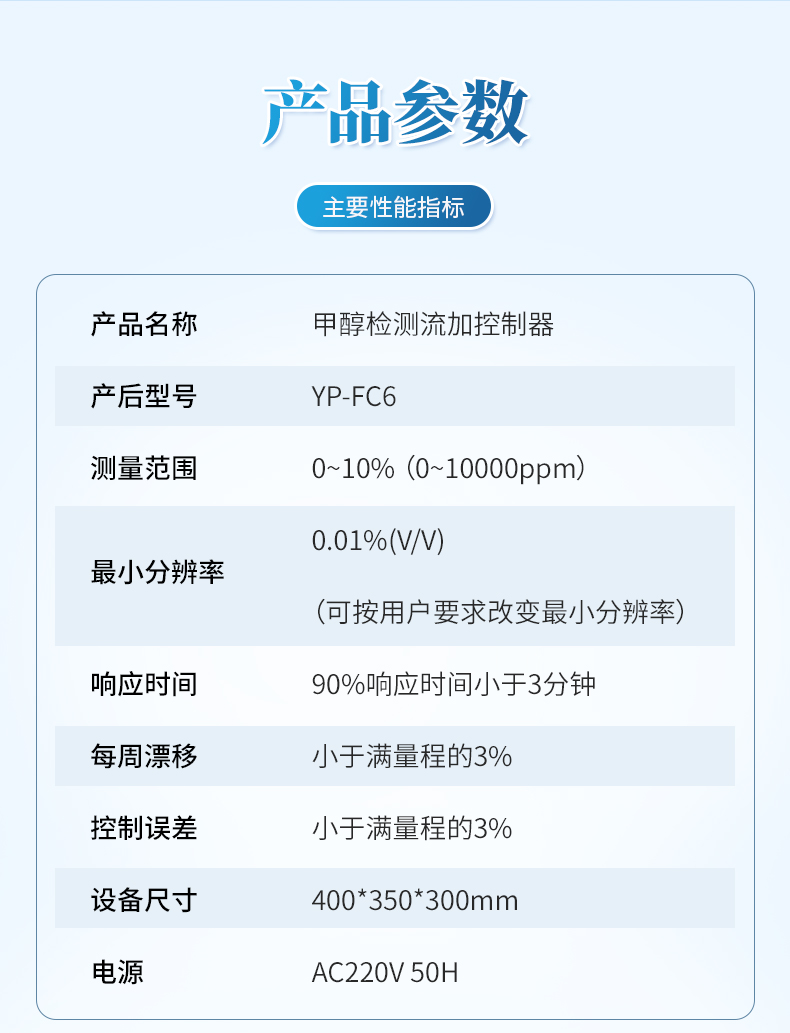 最小分辨率: 0.01%(V/V)(可根據客戶需求改變最小分辨率)
