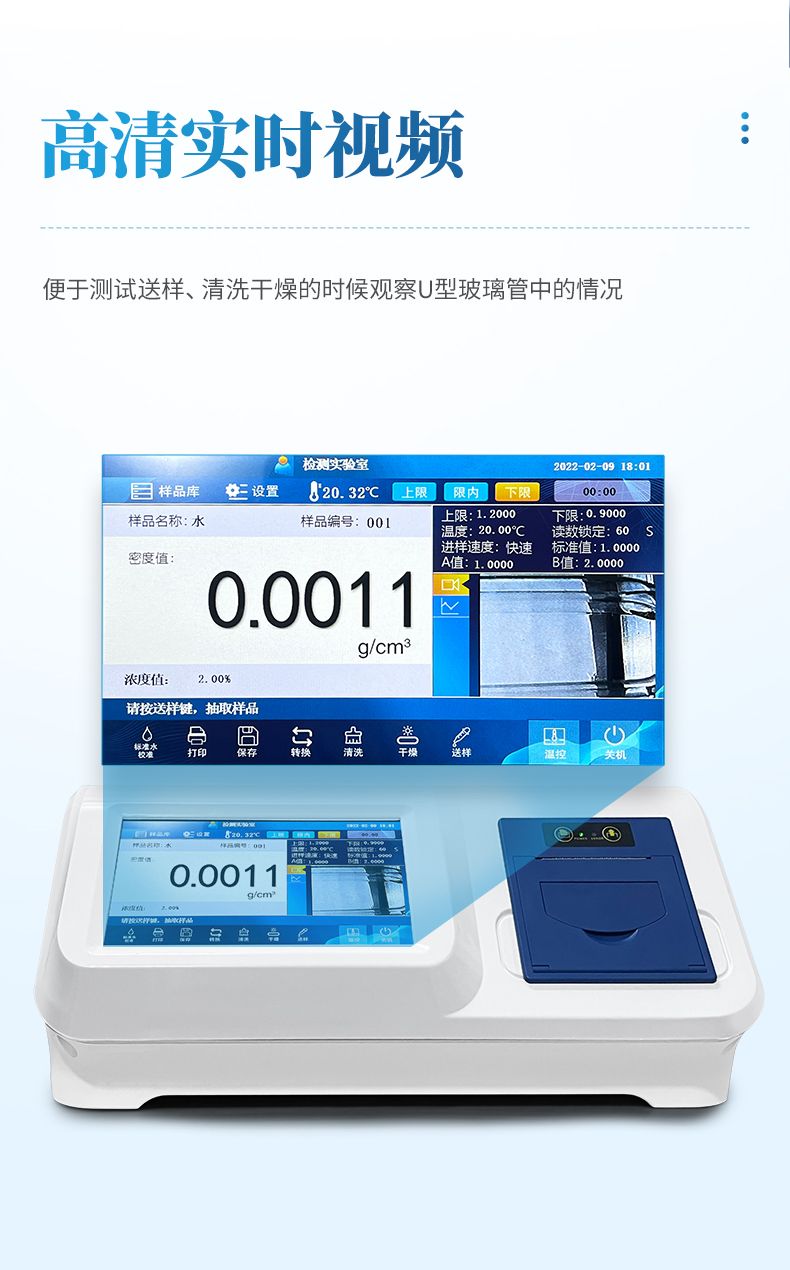 5.高清實時視頻:便于測試送樣、清洗干燥的時候觀察U型玻璃管中的情況。