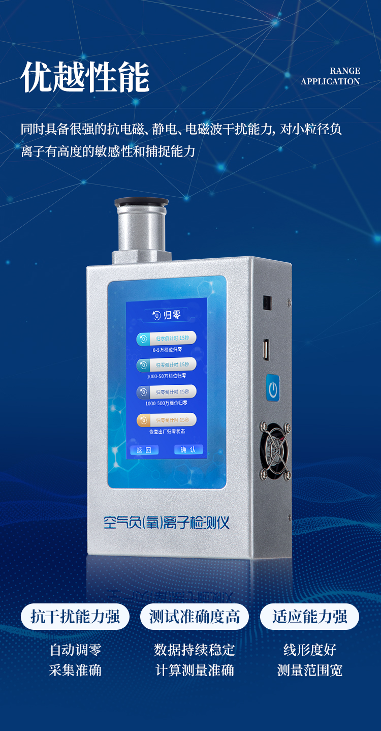 實時測量空氣中的大氣負氧離子濃度、甲醛濃度,是環境監測、納米涂料、負離子保健產品、負離子家裝建材、室內檢測、空氣治理、空氣凈化器及其制品負離子濃度的測量與演示的優選工具。