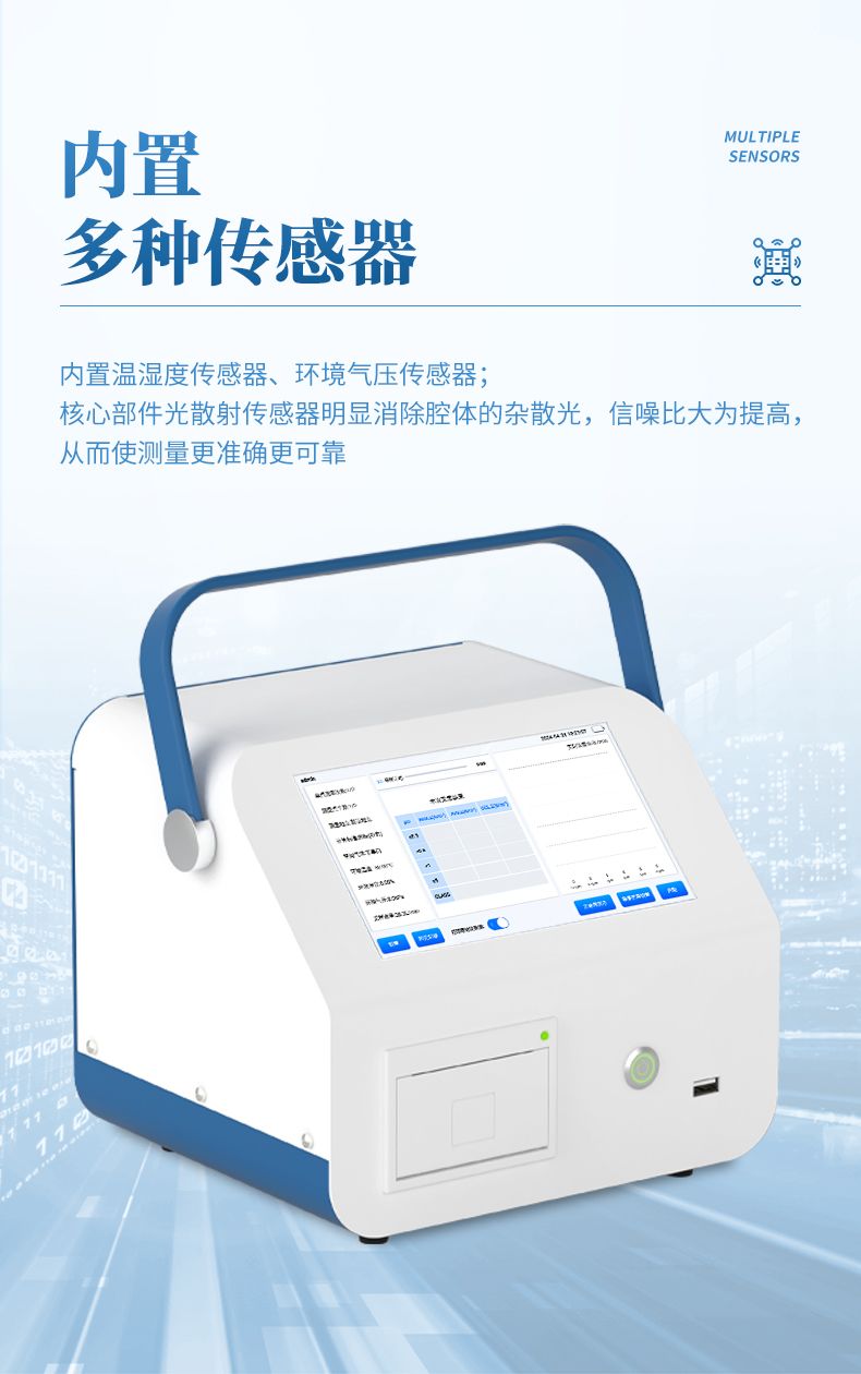 3、核心部件光散射傳感器明顯消除腔體的雜散光,信噪比大為提高。從而使測(cè)量更準(zhǔn)確更可靠。