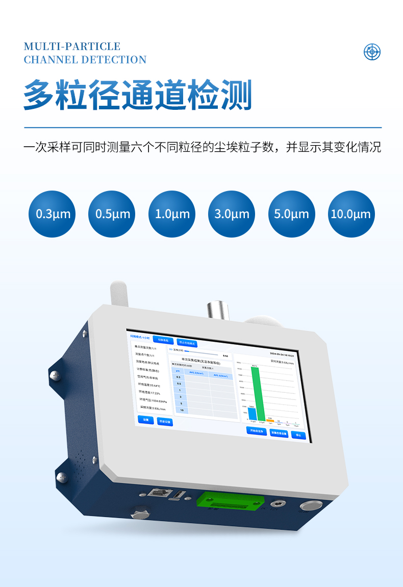 六粒徑通道:0.3,0.5,1.0,3.0,5.0,10.0(μm)