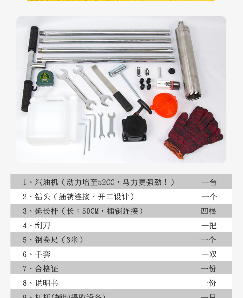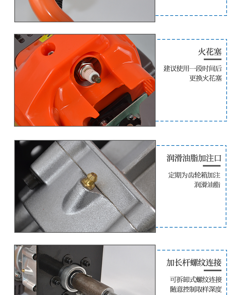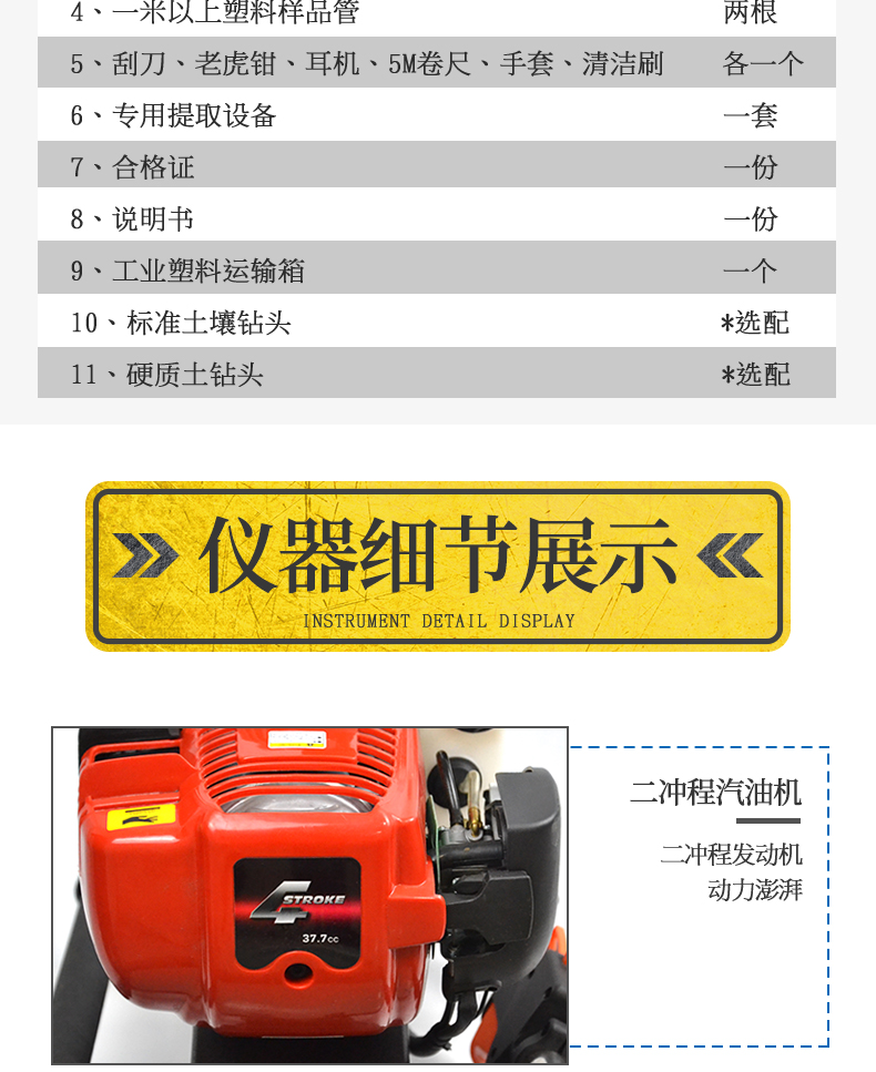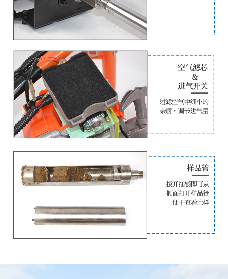 動力(汽油)土壤采樣器(汽油動力土鉆)土壤采樣器是本廠汲取廣大客戶意見、經(jīng)多方用戶需求和市場調(diào)研,開發(fā)出的一款動力(汽油)土壤采樣器。儀器采用汽油機(jī)驅(qū)動、以大幅減免土壤取樣人員的勞動力和快速、取樣簡便而著稱。