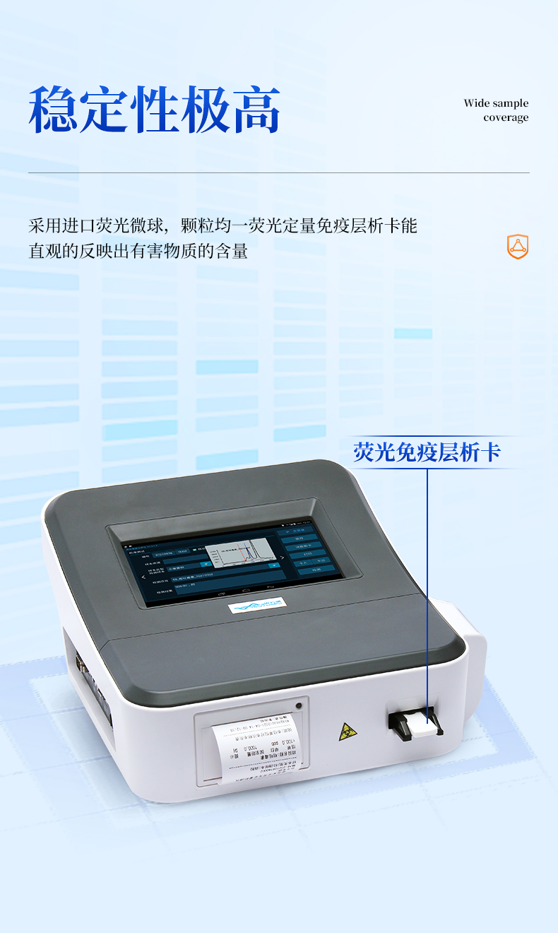 3、內(nèi)置定量標(biāo)準(zhǔn)曲線:儀器內(nèi)置標(biāo)準(zhǔn)曲線,無需使用標(biāo)準(zhǔn)品,檢測時(shí)無需做標(biāo)準(zhǔn)曲線,既節(jié)省了成本,也避免了操作人員與嘔吐毒素的接觸,保護(hù)操作人員的安全;