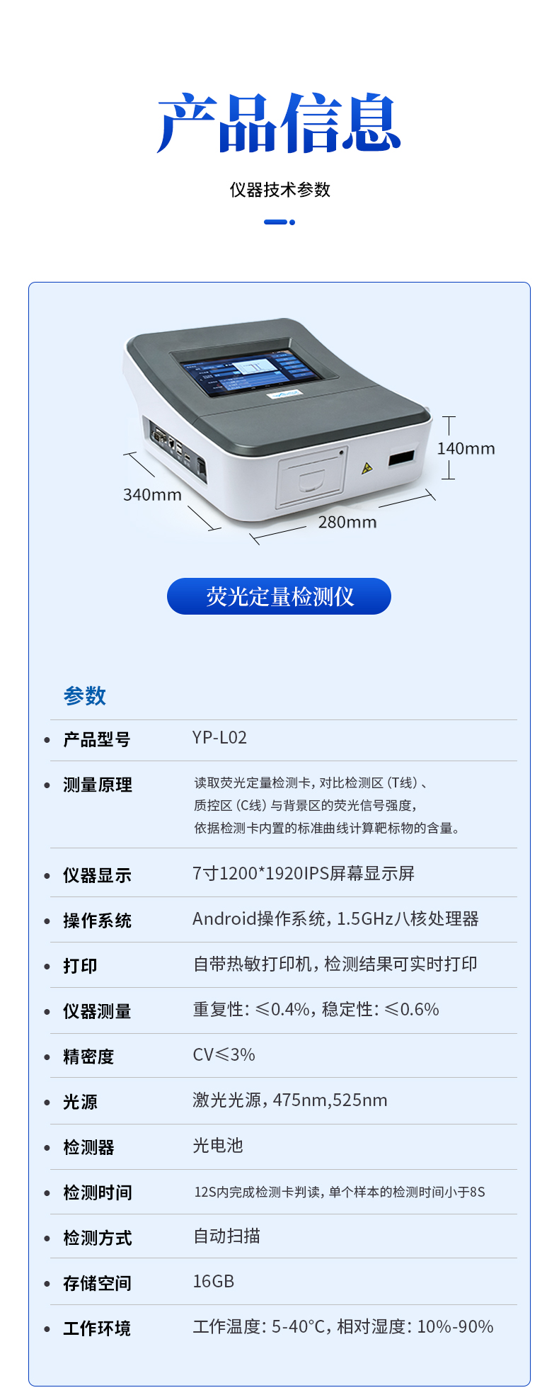 1、測量原理:讀取熒光定量檢測卡,對比檢測區(qū)(T線)、質(zhì)控區(qū)(C線)與背景區(qū)的熒光信號強(qiáng)度,依據(jù)檢測卡內(nèi)置的標(biāo)準(zhǔn)曲線計(jì)算靶標(biāo)物的含量。
