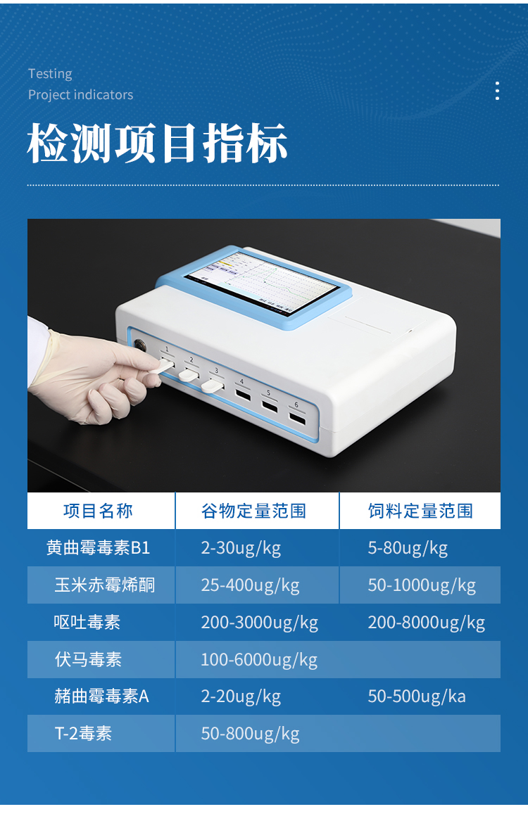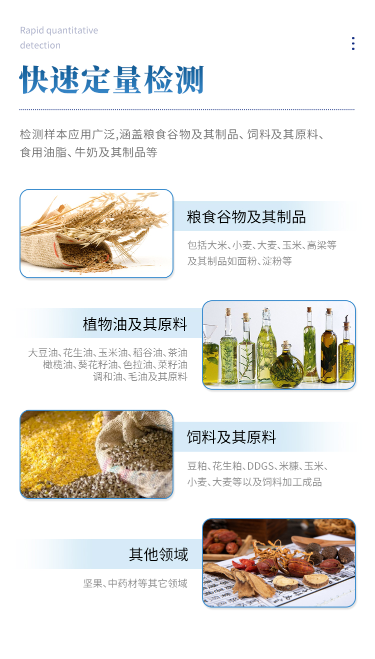 伏馬毒素 | 100-6000ug/kg | 玉米、小麥、麥麩、豆粕、花生粕、玉米胚芽粕、膨化玉米、DDGS、噴漿玉米皮、濃縮料及犢牛顆粒料及成品飼料 |