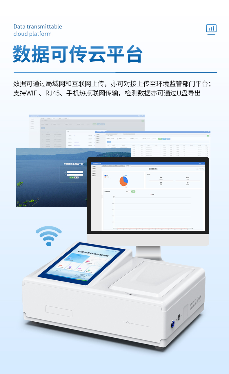 6、具有無線通訊功能,支持WIFI、RJ45、手機熱點聯(lián)網(wǎng)傳輸,檢測數(shù)據(jù)亦可通過U盤導(dǎo)出;