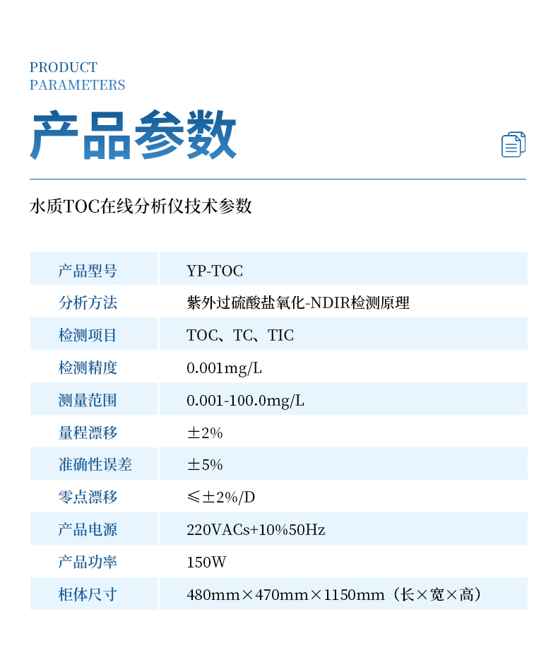 用于測定水中總有機碳濃 度,可以檢測TOC濃度從0.001mg/L-100.0mg/L的水樣,具有高靈敏度和精確度,以及良好的穩(wěn)定性。符合EPUSP及2015版《中國藥典》要求
