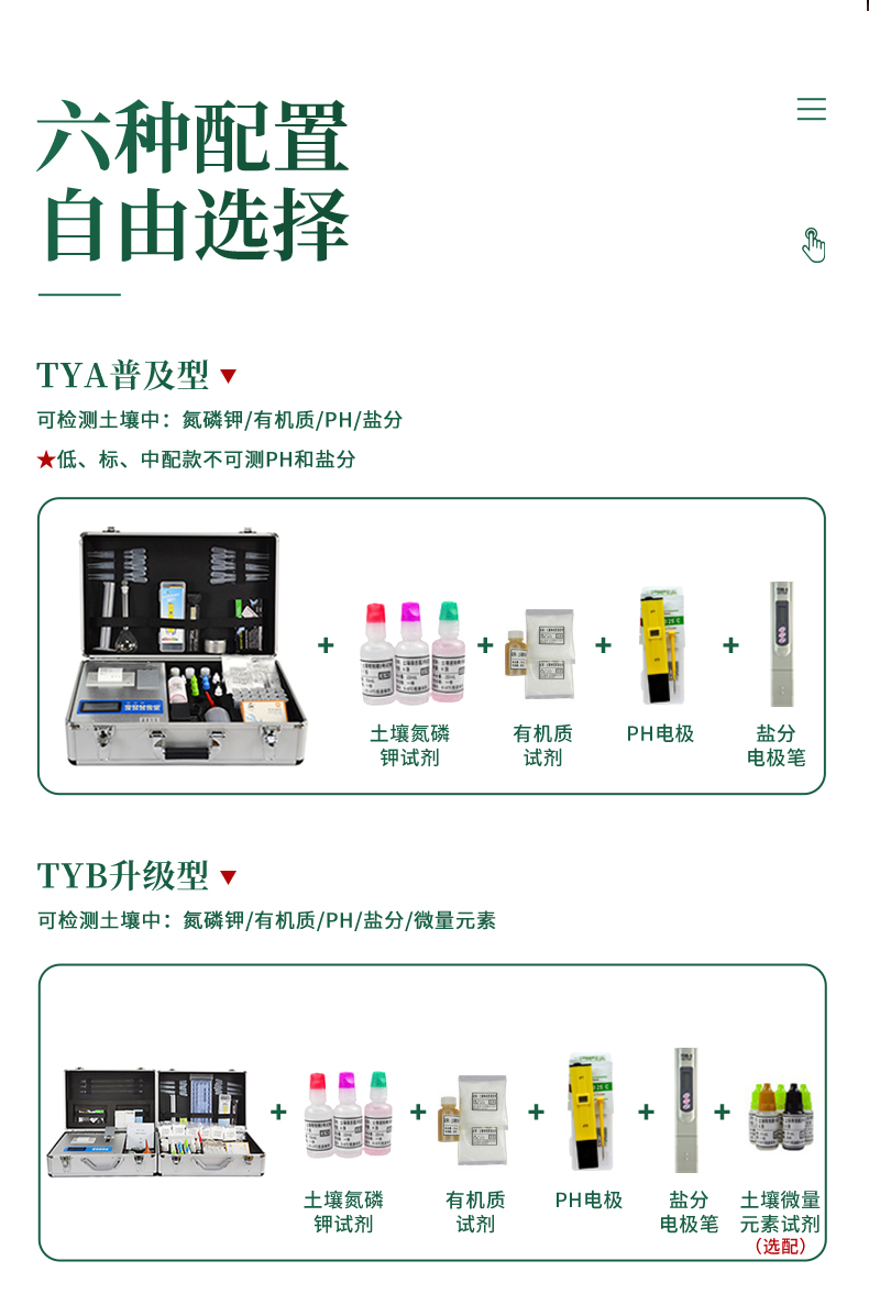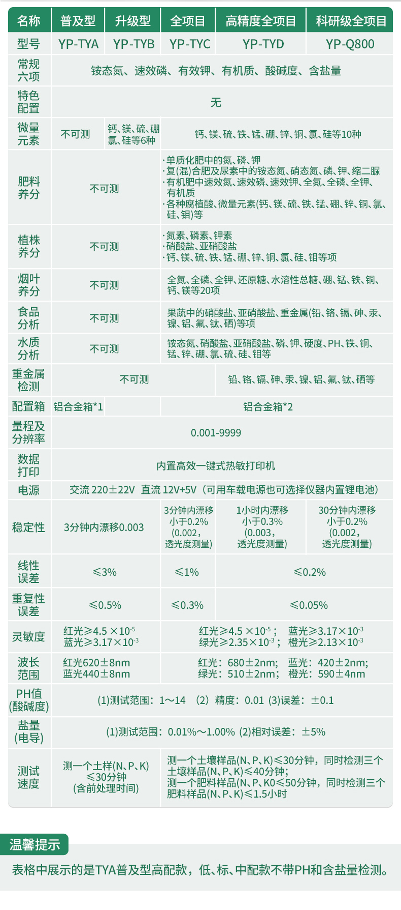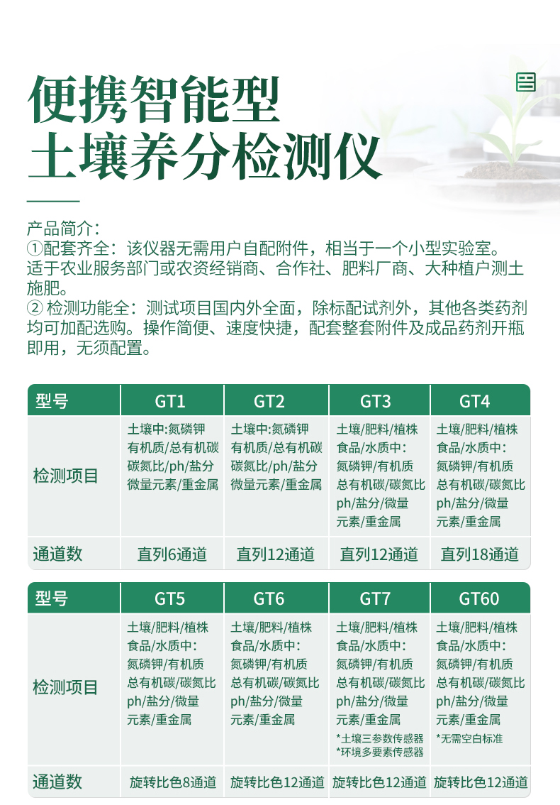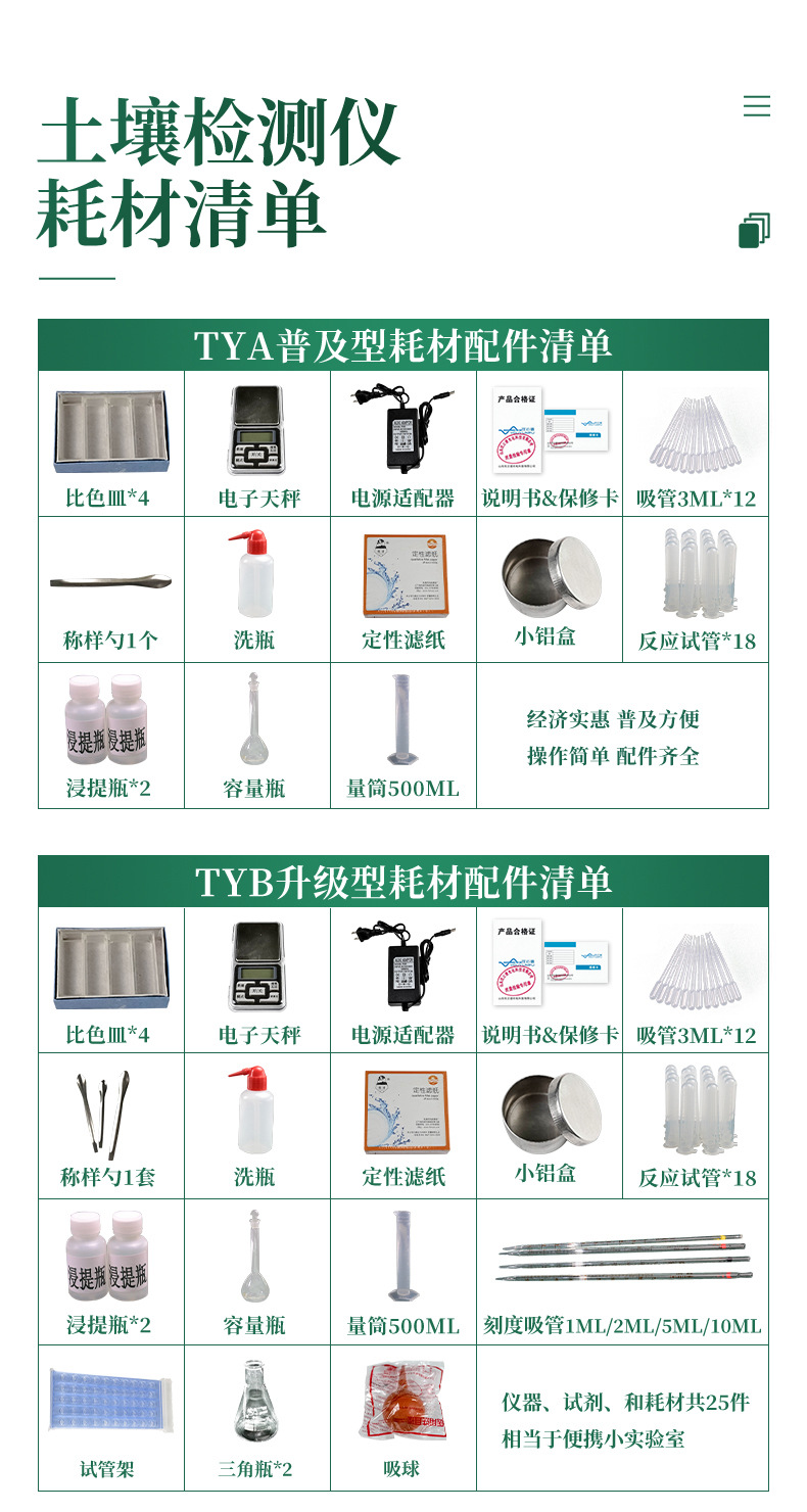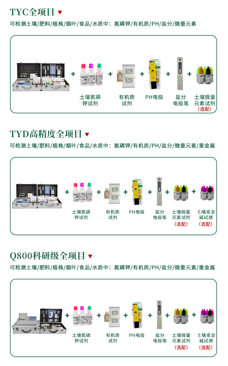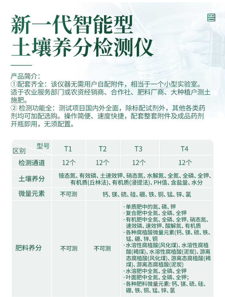配套齊全:土壤養分速測儀該儀器集藥、器、儀為一體,攜帶方便,相當于一個小型實驗室。適于農業服務部門或農資經銷商、肥料廠商測土施肥和鑒別肥料真假。