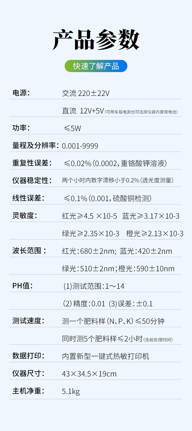 11.測試速度:測一個肥料樣(N、P、K)≤50分鐘(含前處理時間,不需用戶提供任何附件)
