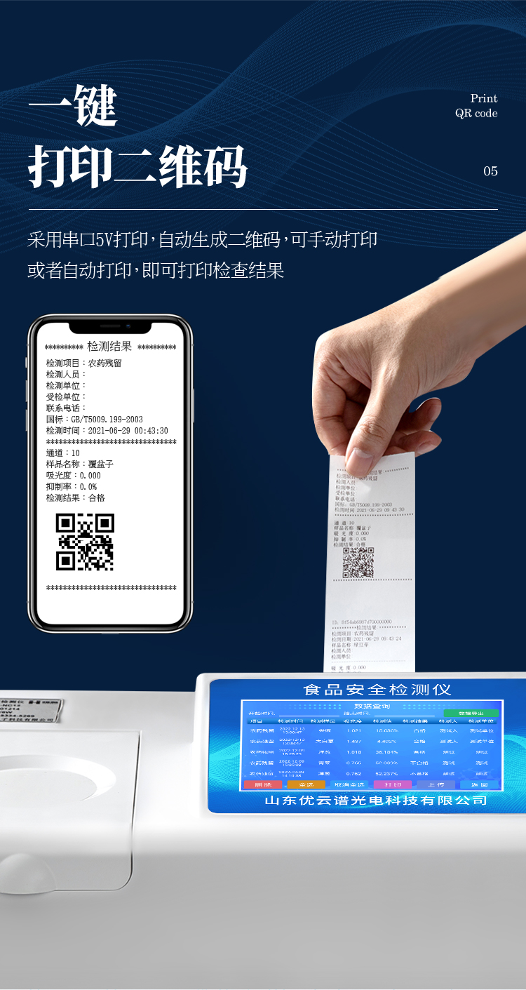 5、配備新一代嵌入式熱敏打印機(jī),可選擇手動打印或者自動打印,檢測完成可自動打印檢測報(bào)告和二維碼。