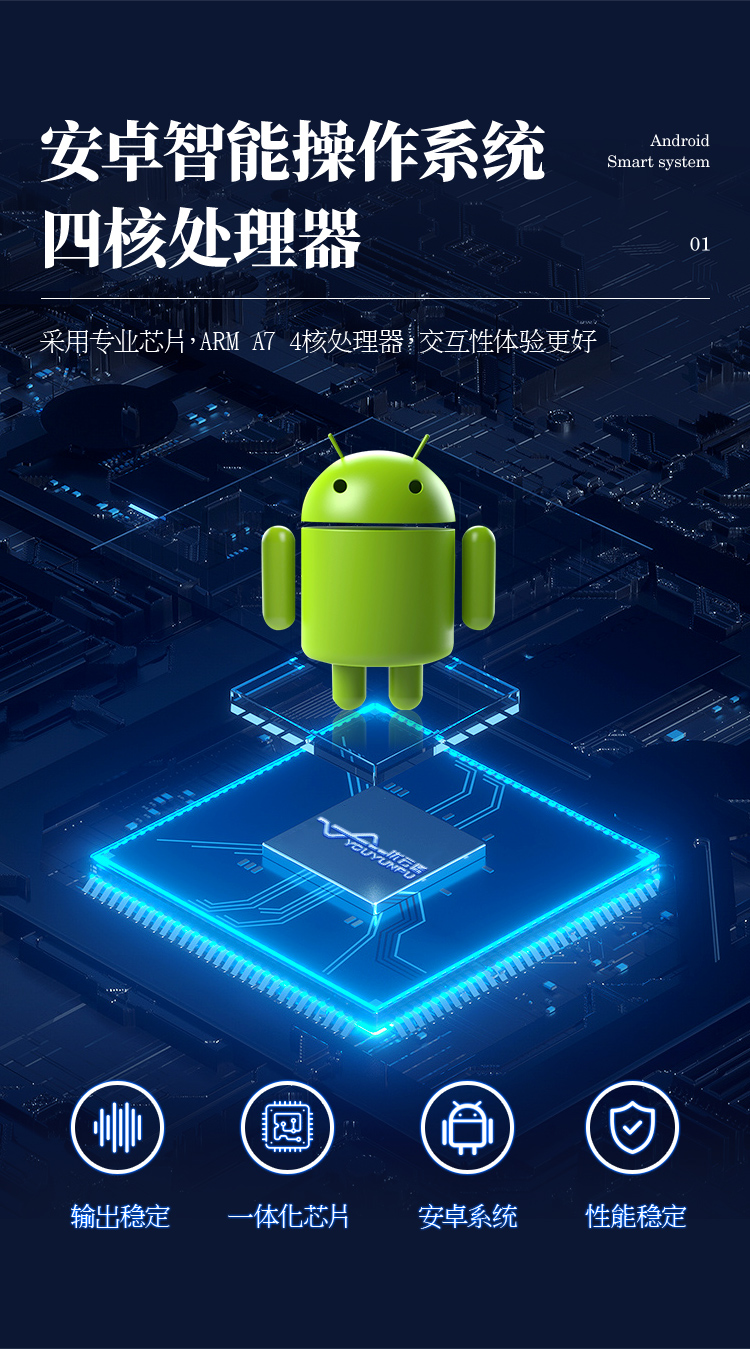 1、主控芯片采用ARM Cortex-A7,RK3288/4核處理器,主頻1.88Ghz,運轉速度更快速,穩定性更強。