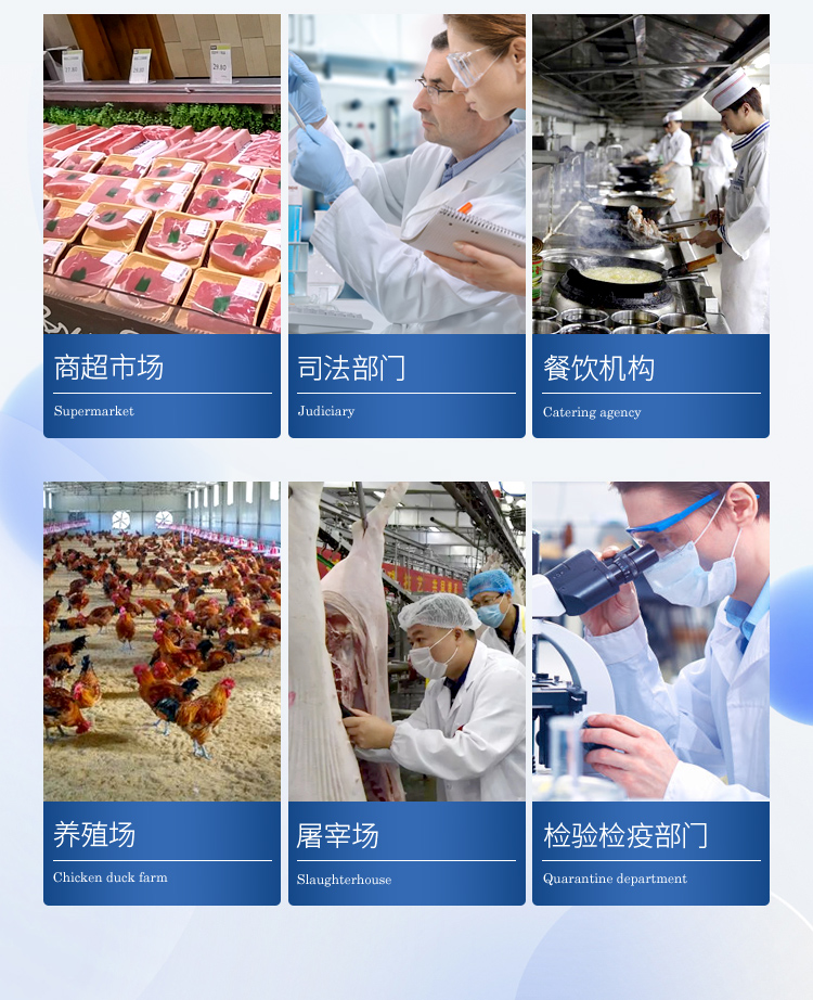 該多功能食品安全檢測儀為集成化食品安全快速檢測分析設(shè)備,廣泛應用于市場監(jiān)管局、檢測中心、衛(wèi)生監(jiān)督部門、農(nóng)業(yè)部門、院校及各單位食堂、食品肉產(chǎn)品深加工企業(yè)、商超市場、司法部門、餐飲機構(gòu)、養(yǎng)殖場、屠宰場、檢驗檢疫部門等單位使用。