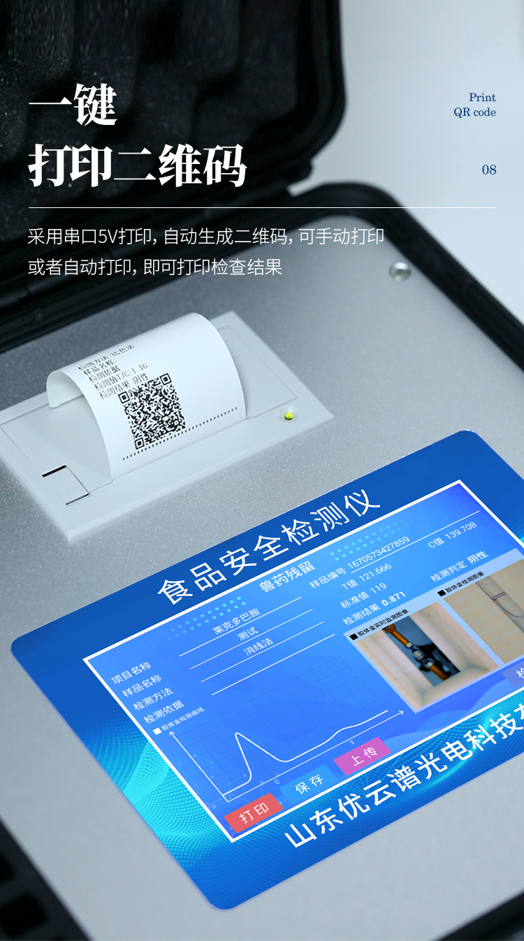 3、新一代高速熱敏打印機,檢測完成可自動打印和批量打印檢測報告和二維碼。
