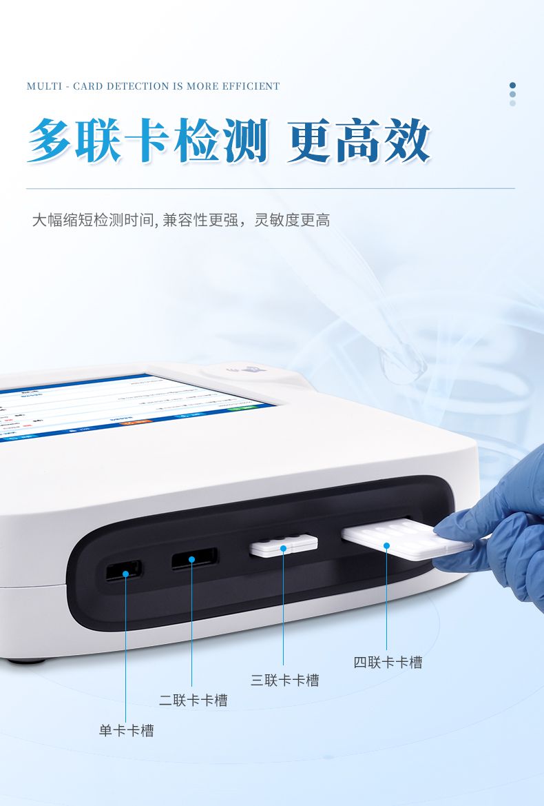 13、內置質控功能,設備和檢測卡均可自檢;內置插卡判斷功能,無卡不能檢測