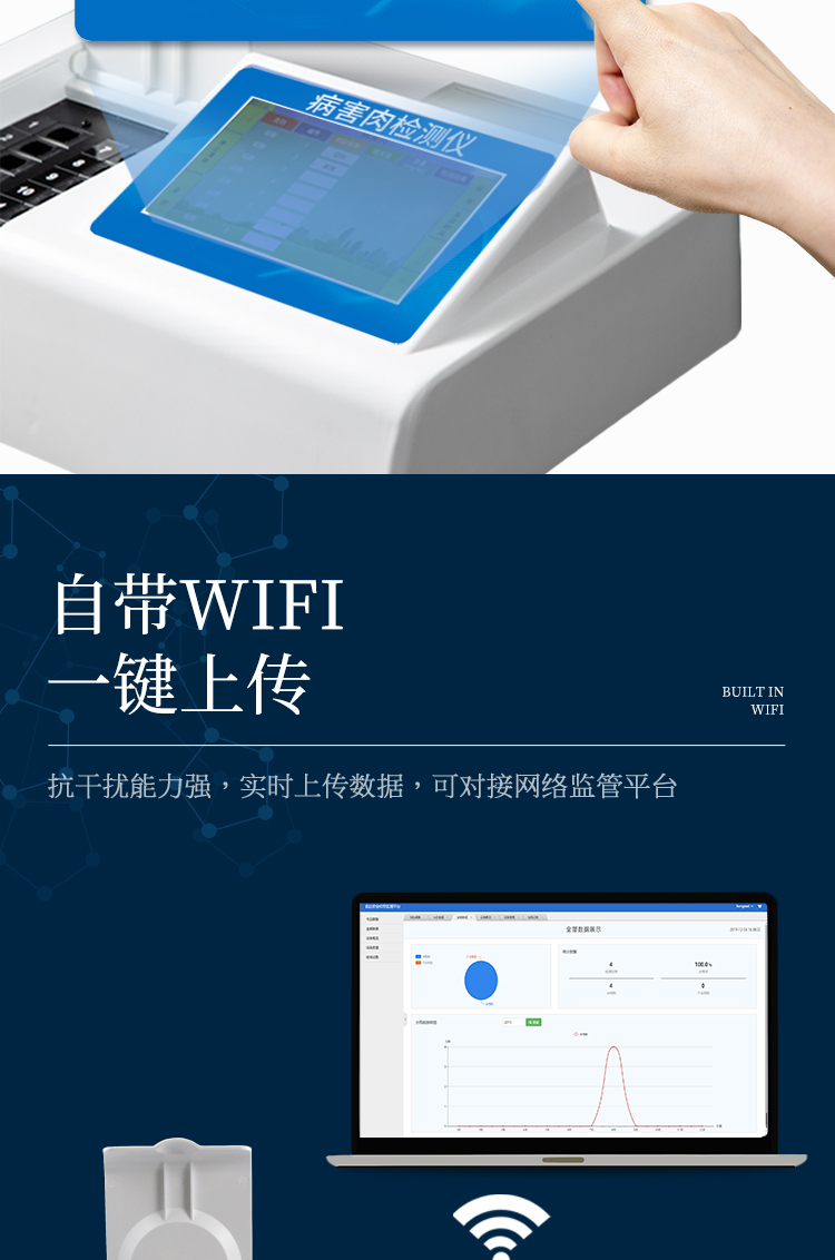 1、安卓智能操作系統,采用更加高效和人性化操作,儀器具有網線連接、wifi聯網上傳、GPRS無線遠傳功能,快速上傳數據。