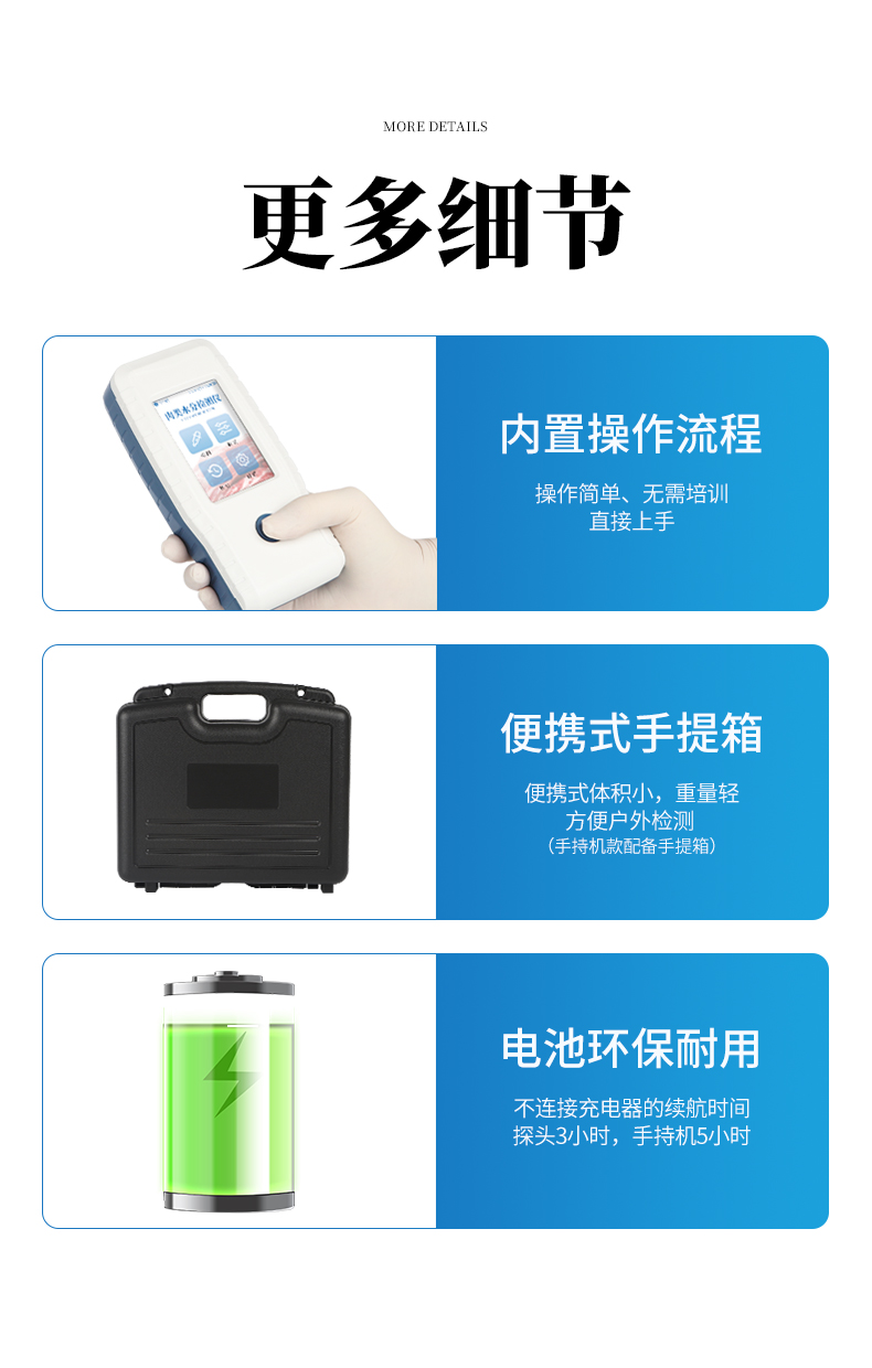 檢測生肉含水量,可檢測4種樣品:雞肉、豬肉、牛肉、羊肉。