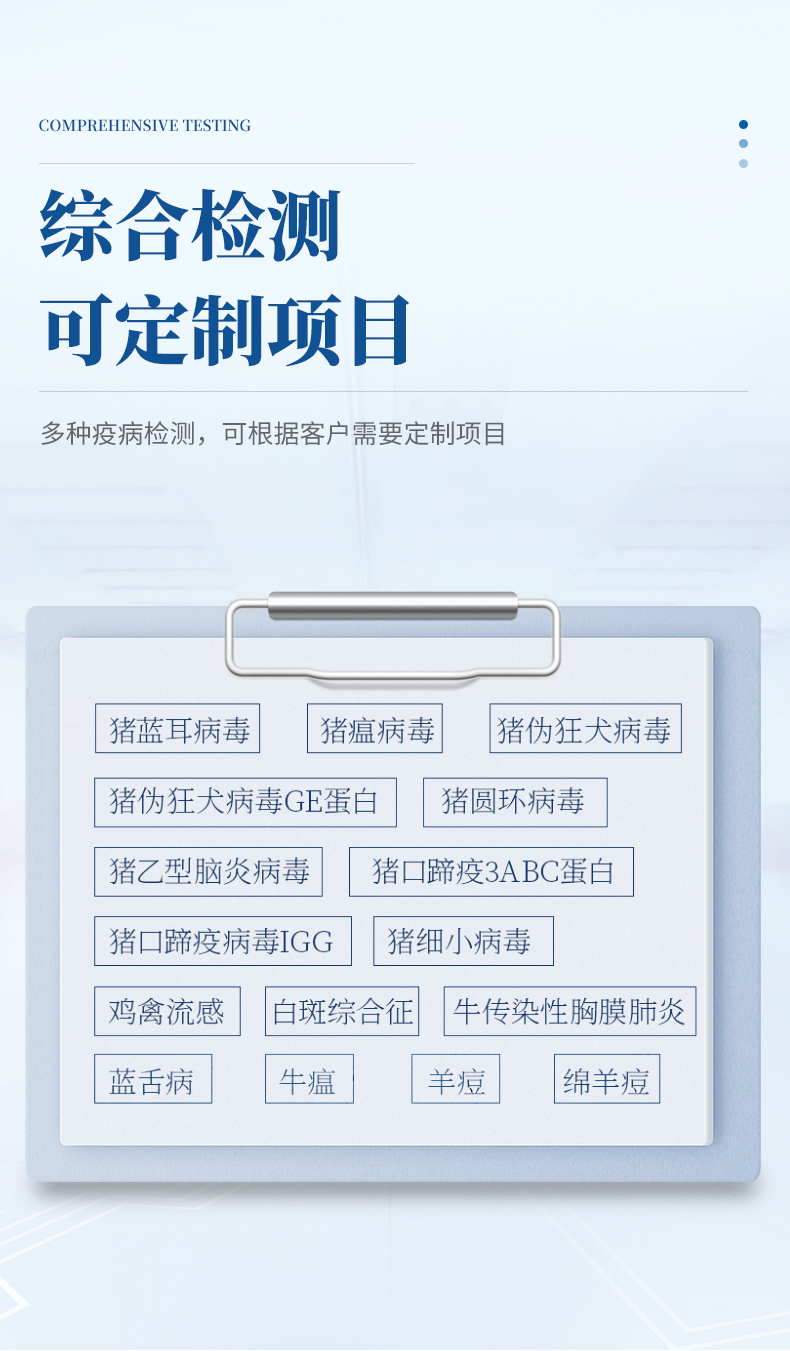 YP-SY96S動物疫病診斷儀是我公司在新推出的一款全新檢測儀器,該系統采用酶聯免疫吸附測定法與相應試劑配合可定性或定量進行動物疫病快速診斷。如:豬藍耳病毒、豬瘟病毒、豬偽狂犬病毒、豬偽狂犬病毒gE蛋白、豬圓環病毒、豬乙型腦炎病毒、豬口蹄疫3ABC蛋白、豬口蹄疫病毒IgG、豬細小病毒、雞禽流感、藍舌病、白斑綜合征、牛傳染性胸膜肺炎、牛瘟、綿羊痘和山羊痘等等疫病檢測,并可根據客戶需要定制項目。