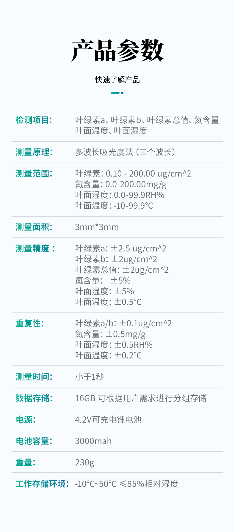 氮含量: ±5% 葉面濕度:±5% 葉面溫度:±0.5℃