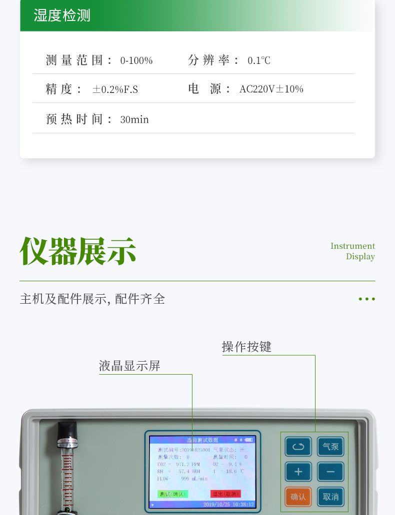 【產品簡介】采用雙波長紅外二氧化碳分析器,3.5寸TFT 真彩液晶顯示器