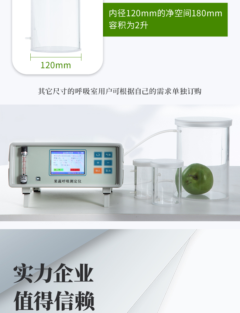 YP-GX20新型果蔬呼吸儀采用雙波長紅外二氧化碳分析器,3.5寸TFT 真彩液晶顯示器,專門用于常溫、冷藏庫、氣調庫、超市冷柜等儲藏條件下的果品和蔬菜呼吸強度的測定和分析研究。該儀器的特點是可以根據果蔬的大小來選擇不同體積的呼吸室,加快了平衡和測定時間;可以通過電腦直接操作儀器,同時顯示呼吸室的CO2濃度、O2濃度、溫度和濕度及變化曲線。
