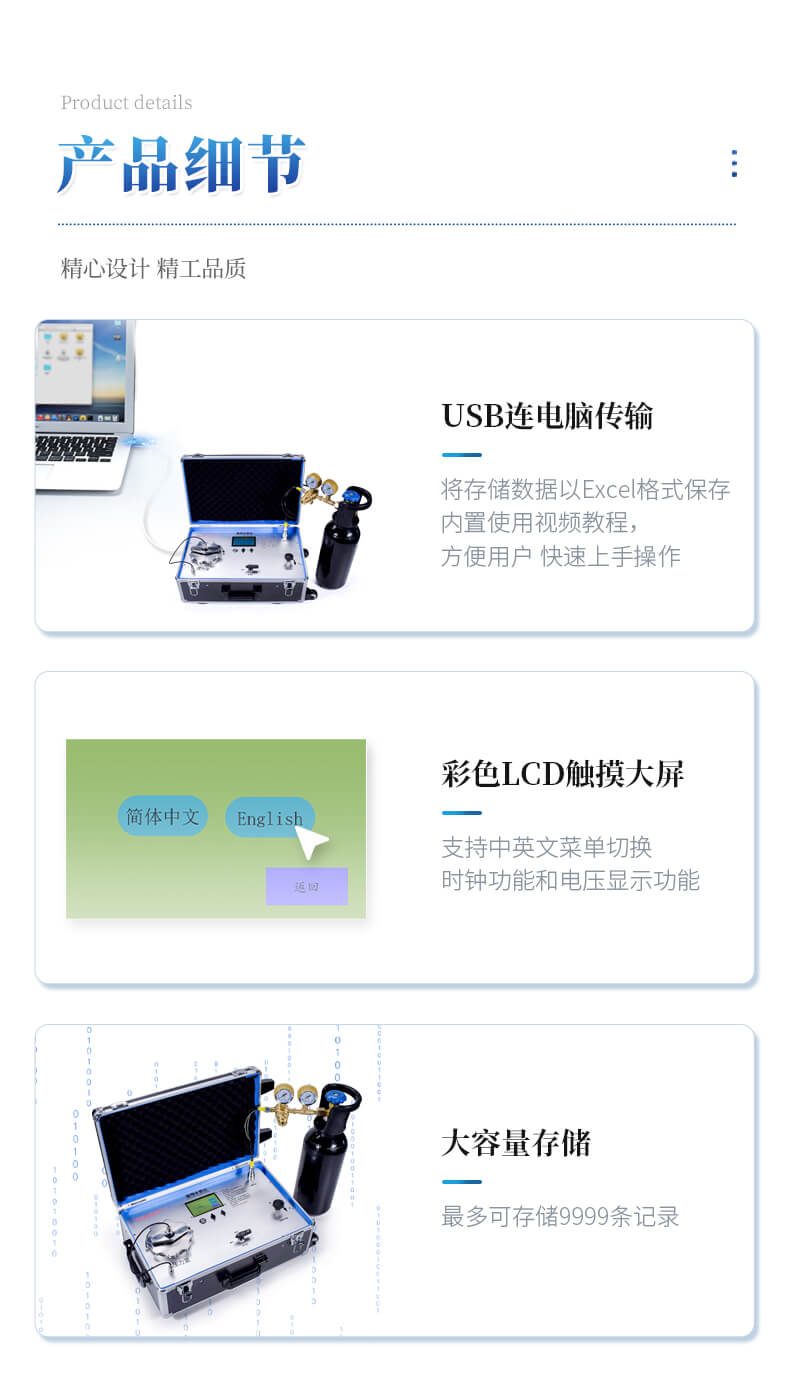 1. 配備4.3英寸彩色LCD觸摸大屏,支持中英文菜單切換。