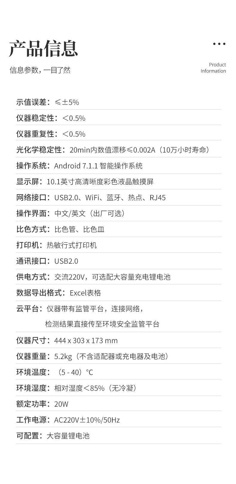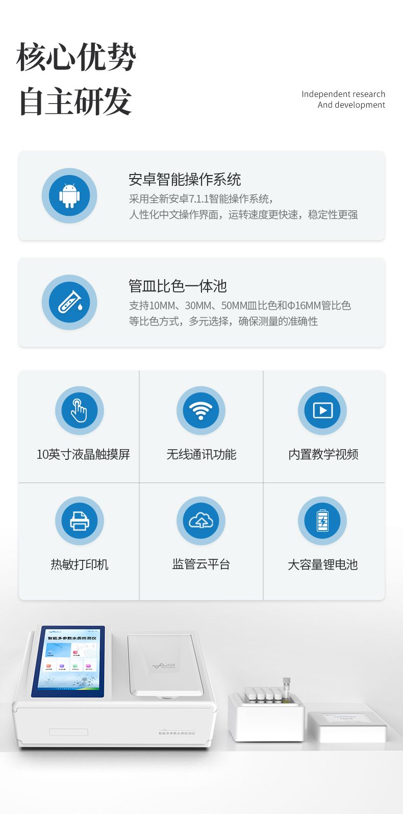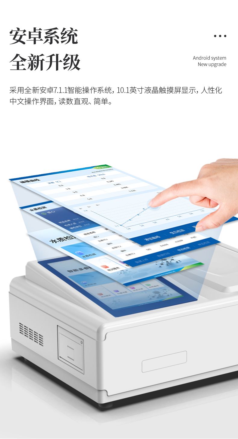 【產品簡介】檢測水質重金屬含量指標,兼具智能數據分析功能,高清晰度彩色液晶觸摸顯示屏,Android智能操作系統(tǒng)