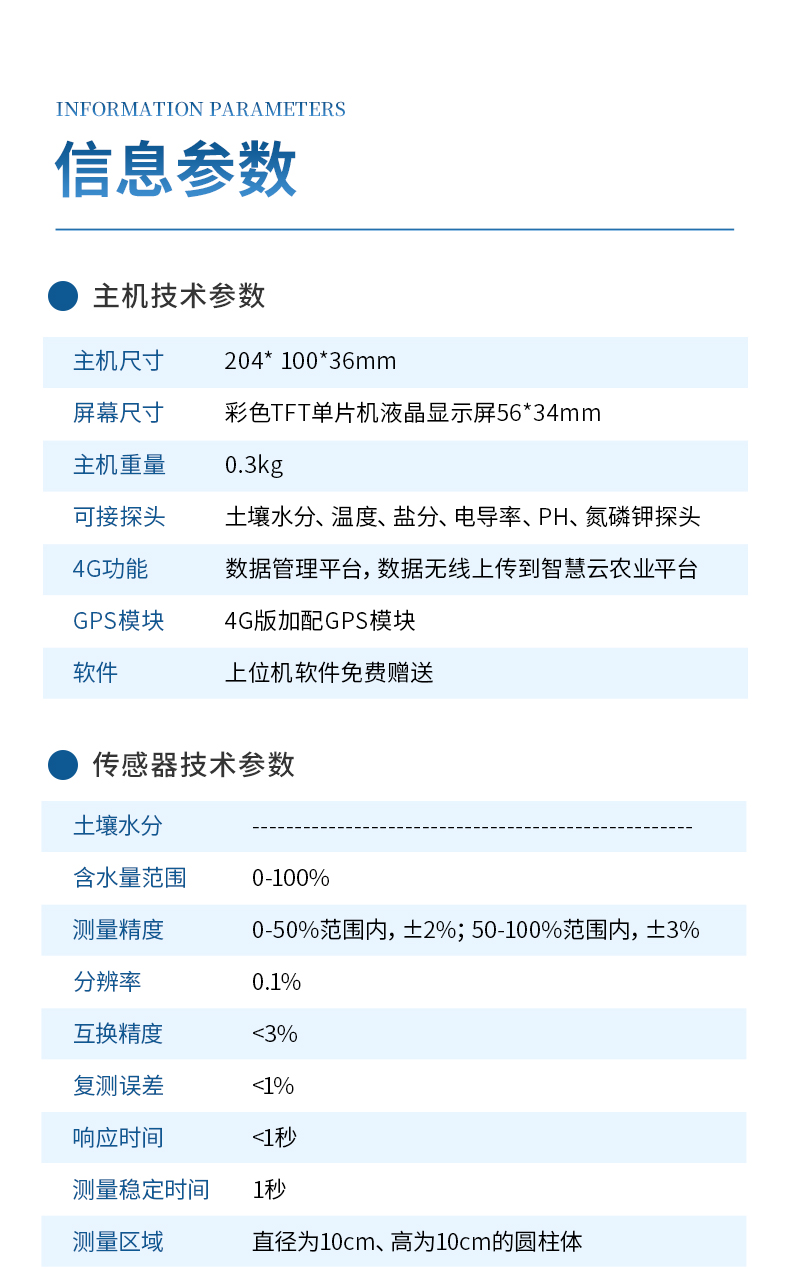 【產品簡介】檢測土壤容積含水量、溫度,配4G聯網功能