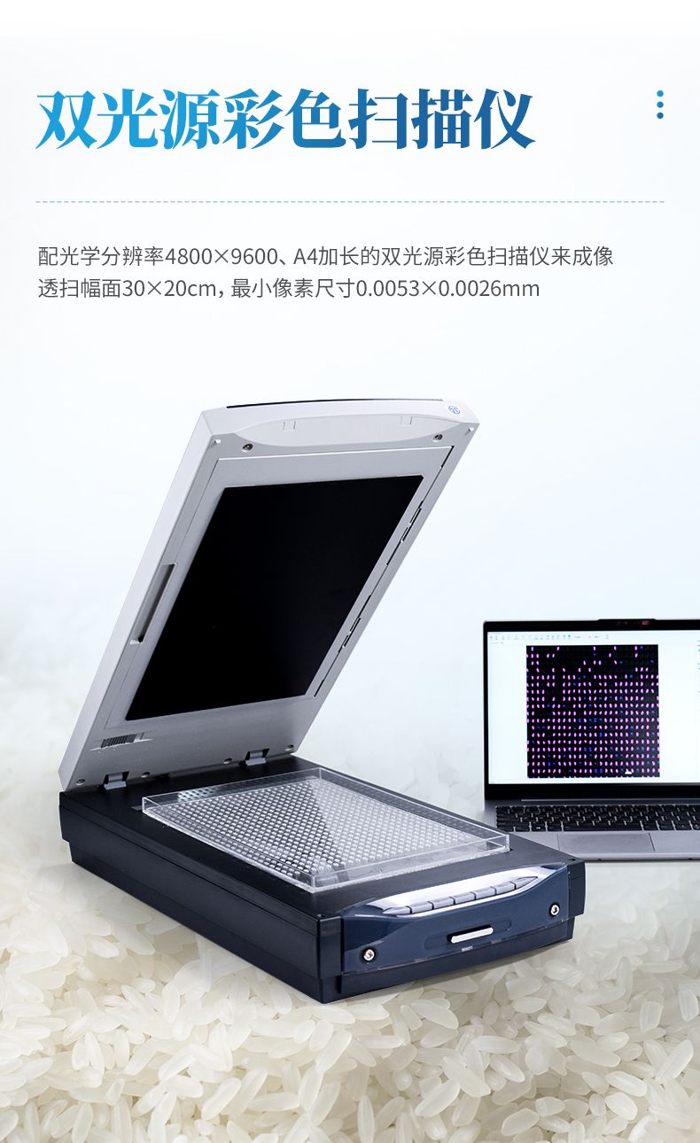 1、★配光學分辨率4800×9600、A4加長的雙光源彩色掃描儀來成像。透掃幅面30 cm×20 cm,最小像素尺寸0.0053mm ×0.0026 mm。