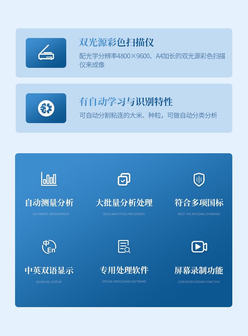 6、★具有自動學習與識別特性,可自動分割粘連的大米、種粒,可做自動分類分析。