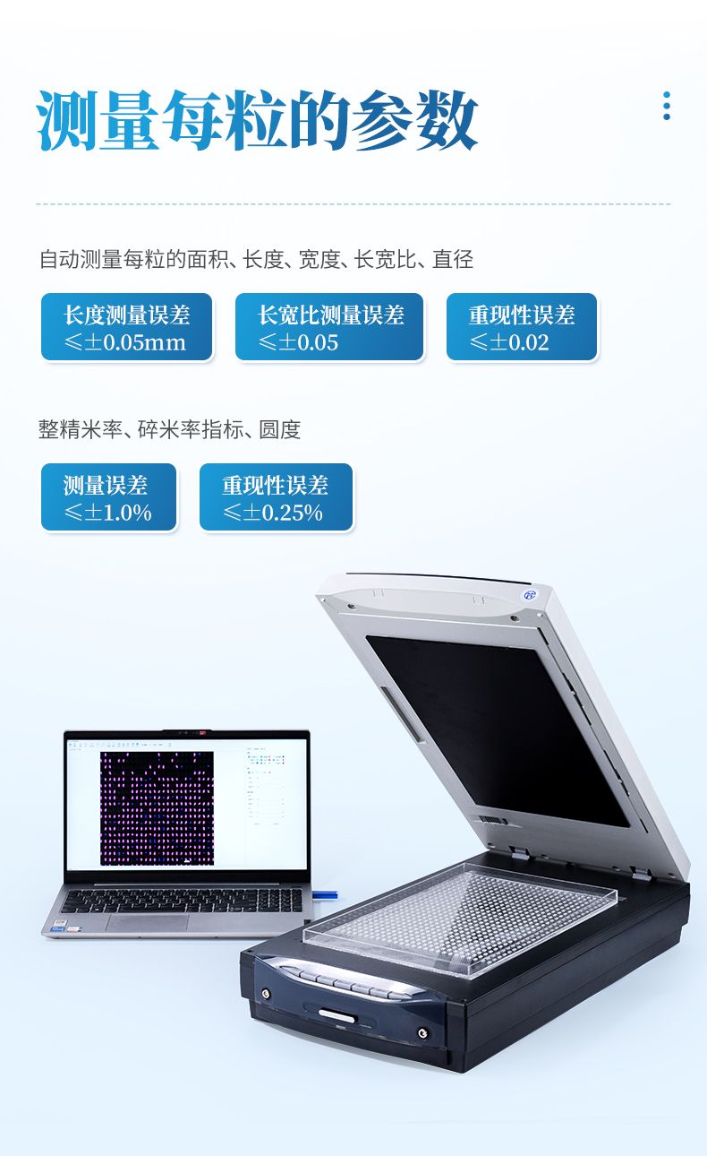 長度測量誤差≤±0.05mm,長寬比測量誤差≤±0.05,重現性誤差≤±0.02