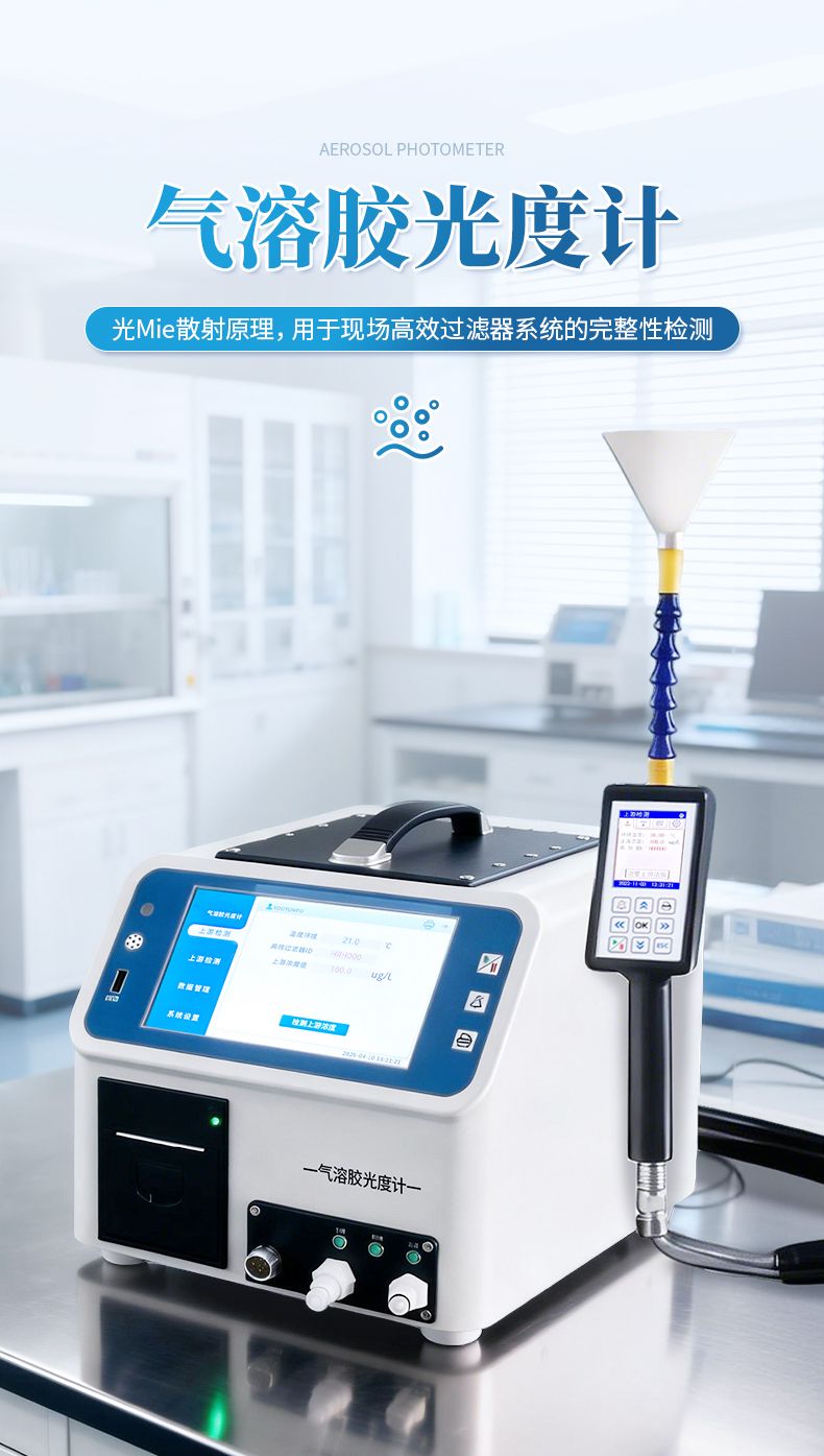 AP1型氣溶膠光度計是根據(jù)光Mie散射原理設(shè)計的,主要用于現(xiàn)場高效過濾器系統(tǒng)的完整性檢測。主機(jī)采用7寸LCD液晶,實時顯示濃度數(shù)據(jù)、泄露率等參數(shù)。適用于HEPA過濾器、HVAC系統(tǒng)、生物安全柜、潔凈室、手套箱等泄露檢測。