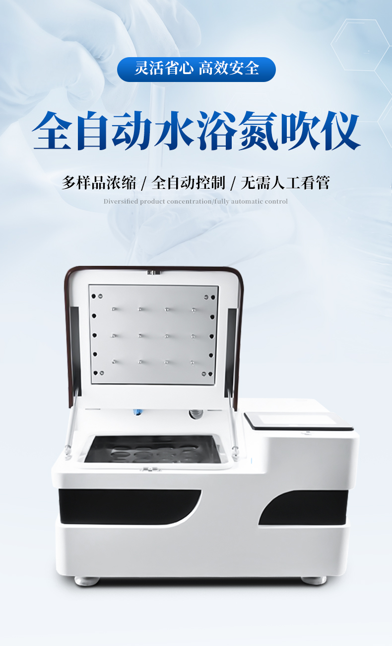 全自動氮氣濃縮儀在大量的分析工作尤其是在環境污染物、食品安全分析領域中,為了獲得痕量的目標組分,都需對備檢樣品進行預處理,其過程主要包括有樣品提?。ㄝ腿。?、濃縮、凈化及再濃縮等基本步驟,其中如何快速無損的濃縮也是關鍵的一環。完成濃縮過程的常用裝置包括旋轉蒸發儀、K-D濃縮器和氮氣吹掃(簡稱氮吹儀)等,其中以氮吹濃縮簡單,它不需要特別的裝置設計,當樣品數量不多或溶劑量較小時,采用該法方便。當同時需要濃縮大批量樣品且溶劑量多時,以上各濃縮裝置就顯得力不從心,濃縮過程顯得費時、費力(需要看管,以防吹干)且開放式的氮吹裝置對操作人員身體健康不利。