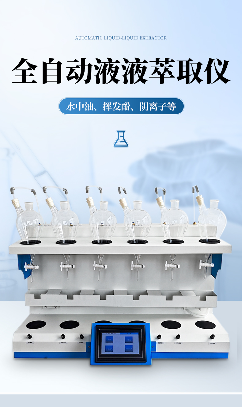 全自動液液萃取儀采用新封閉式靜音潔凈空氣內(nèi)循環(huán)震蕩原理,雙向氣液混合技術(shù),用于實(shí)驗(yàn)室水質(zhì)檢測水中油、揮發(fā)酚、陰離子等項(xiàng)目的液液萃取前處理,適用于水質(zhì)監(jiān)測中的水中石油類等需要液液萃取的場合、中藥材中農(nóng)藥殘留量的測 定。儀器由萃取瓶、氣液泵及控制部分組成。代替人工搖晃,減輕實(shí)驗(yàn)人員的勞動強(qiáng)度, 提高萃取效率,使分析結(jié)果穩(wěn)定更可靠。設(shè)備通過大液晶觸摸屏顯示和設(shè)置多項(xiàng)萃取參數(shù)以滿足不同樣品的萃取要求,實(shí)驗(yàn)過程無需人工看管,設(shè)備實(shí)現(xiàn)自動萃取,自動放氣,自動收集,自動排液,自動清洗等功能
