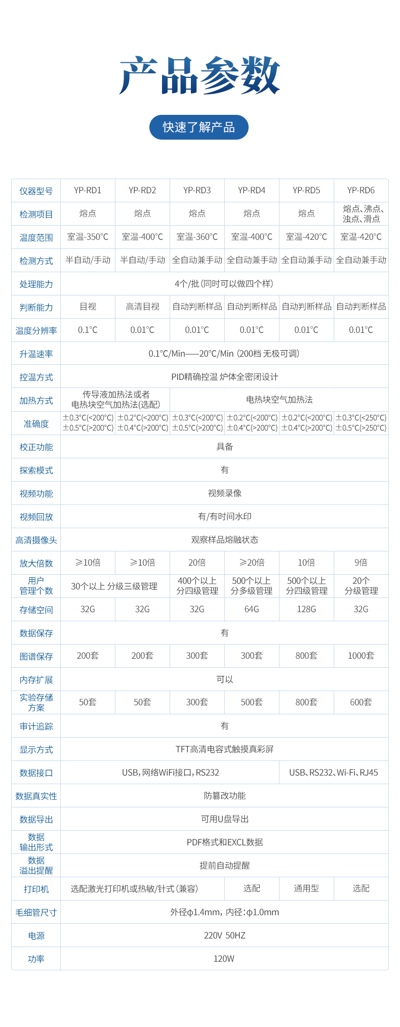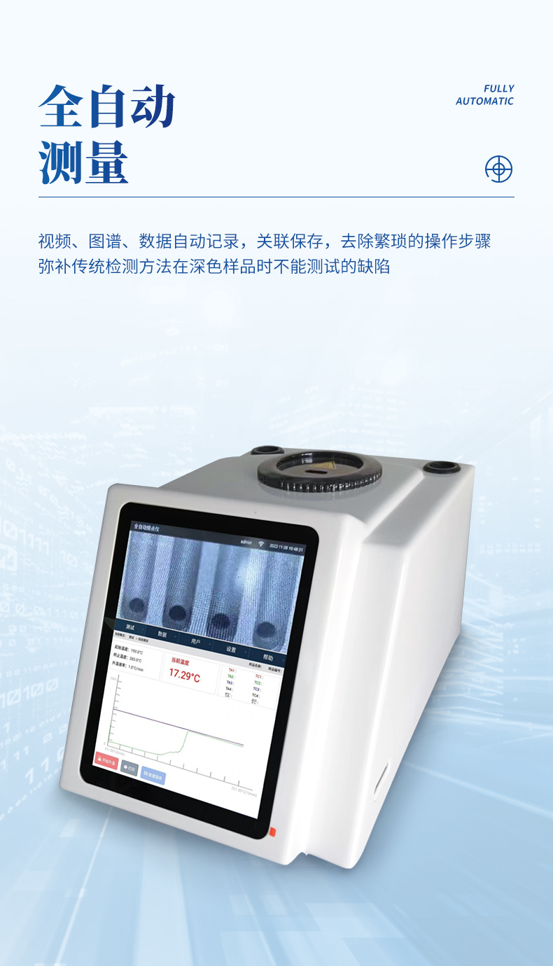 YP-RD2熔點儀完美結(jié)合高精度控溫技術(shù)和高清視頻攝像技術(shù),不但為用戶提供準(zhǔn)確、穩(wěn)定、可靠的測試結(jié)果,還為用戶帶來高效便捷的測試感受。高清視頻可方便清晰的看到樣品熔化的全過程,自動檢測實時圖譜顯示,方便用戶準(zhǔn)確測得樣品熔點和熔距。