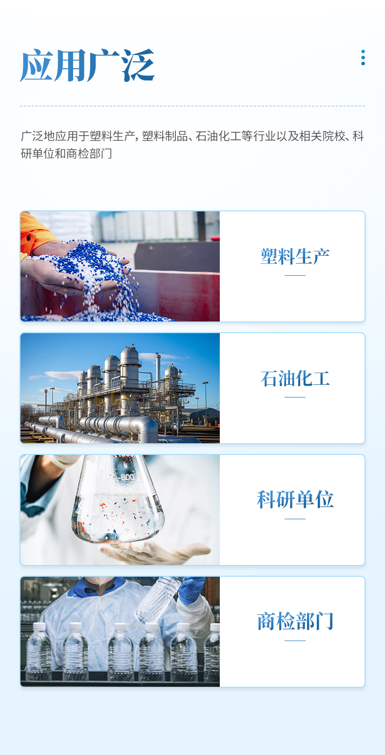 本儀器是用來測定各種高聚物在粘流狀態時熔體流動速率,它既適用于熔融溫度較高的聚碳酸酯、聚芳砜、氟塑料、尼龍等工程塑料,也適用聚乙烯、聚苯乙烯、聚丙烯、ABS樹脂、聚甲醛樹脂等熔融溫度較低的塑料測試,廣泛地應用于塑料生產、塑料制品、石油化工等行業以及有關院校、科研單位和商檢部門。